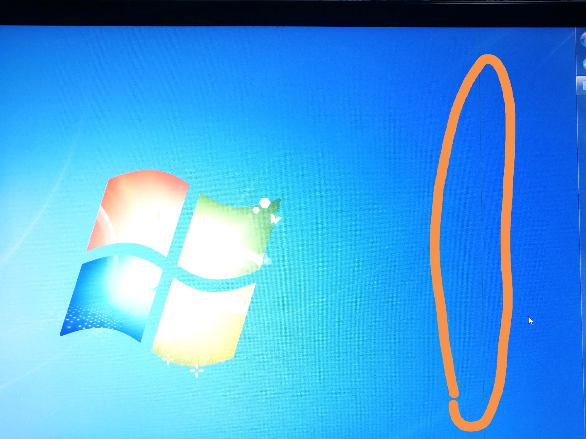 各位亲们,电脑桌面最近总出现这么一条线,颜色总变,偶尔还没有,是显卡的问题还是显示器的问题啊