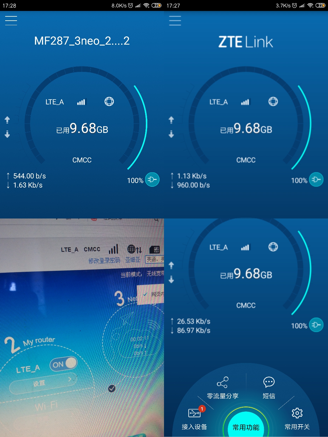 中兴千兆插卡路由器MF287和MF286的4G+也用上