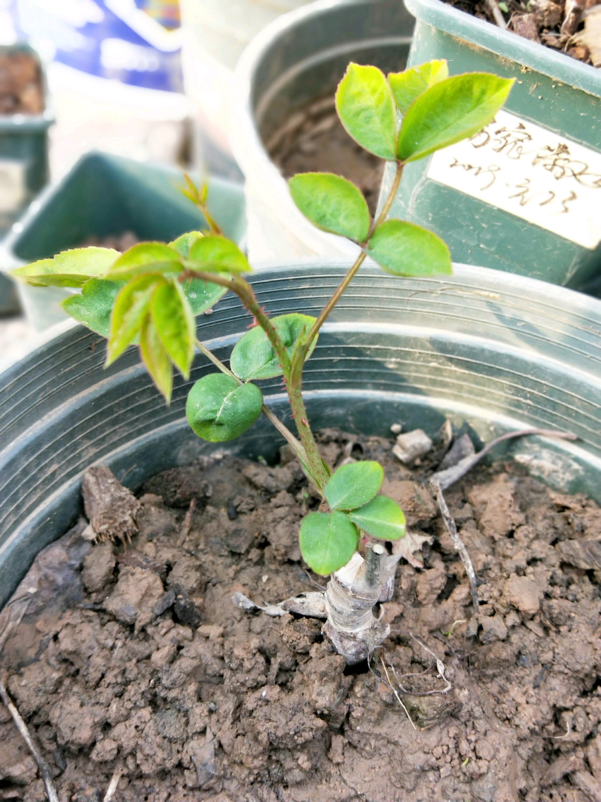 嫁接了一棵玛丽玫瑰,长得挺快的,就是一柱擎天,打了一次顶,从中间剪断了,20天后发出了2个芽。