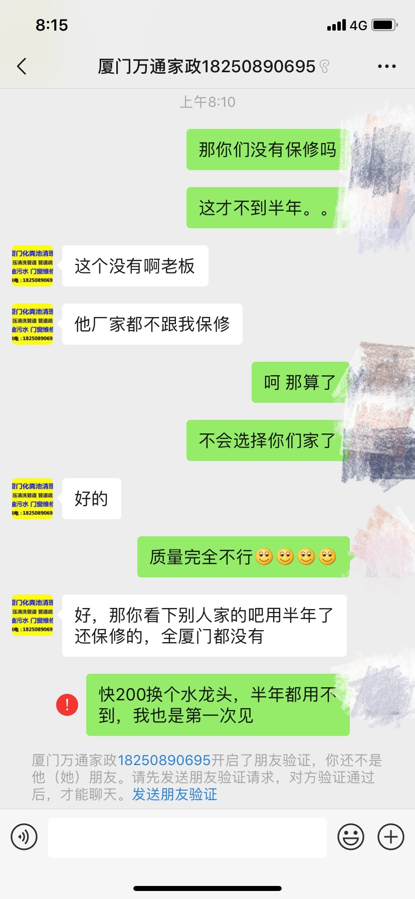 关键是他新换不到半年的,而且是因为接口生锈用不了的,水龙头半年换一个??? 而且态度那么差,当然要曝光