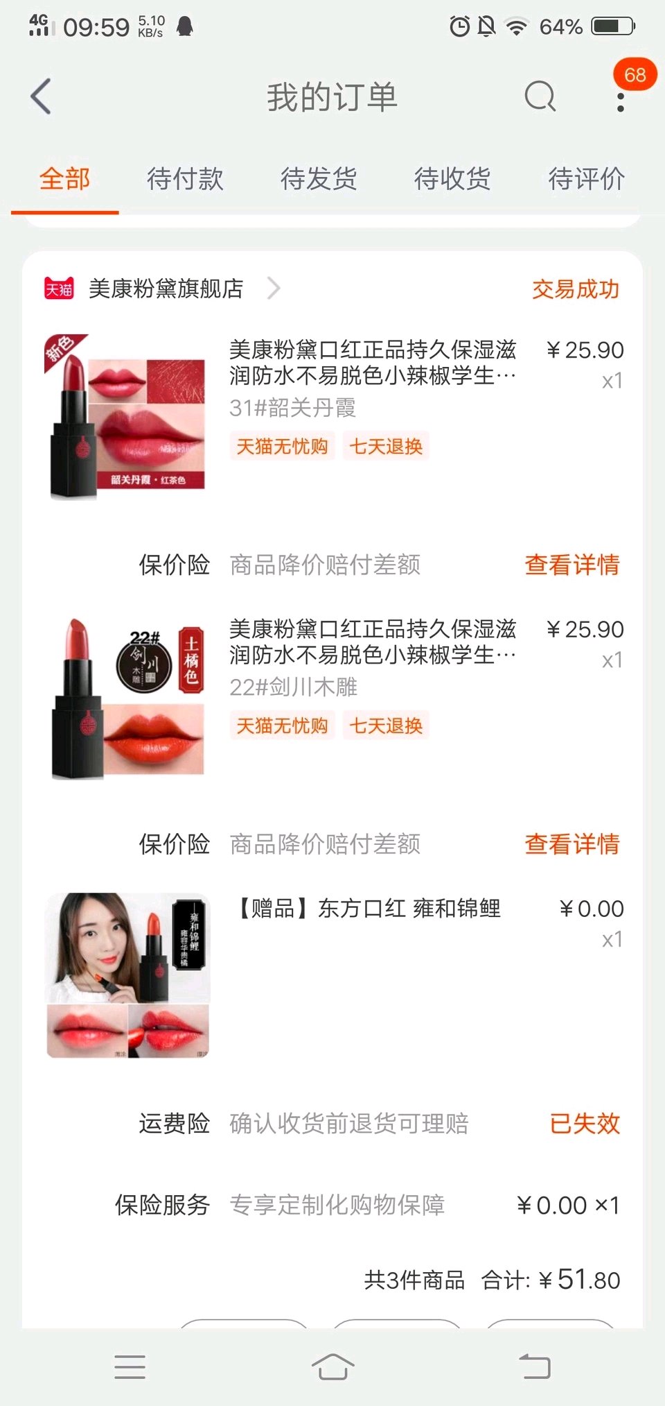 大牌口红(可补差)