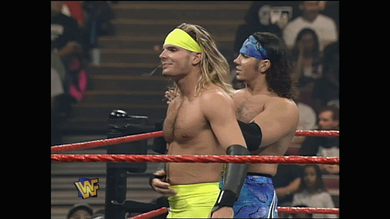 1997年10月6号RAW,刚刚首秀没多久的 HARDY BOYZ,意气风发,这是他们平常的一个work day