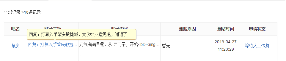 坐标-广东肇庆吧,辛苦连续3年发帖,居然被系统删除申请恢复