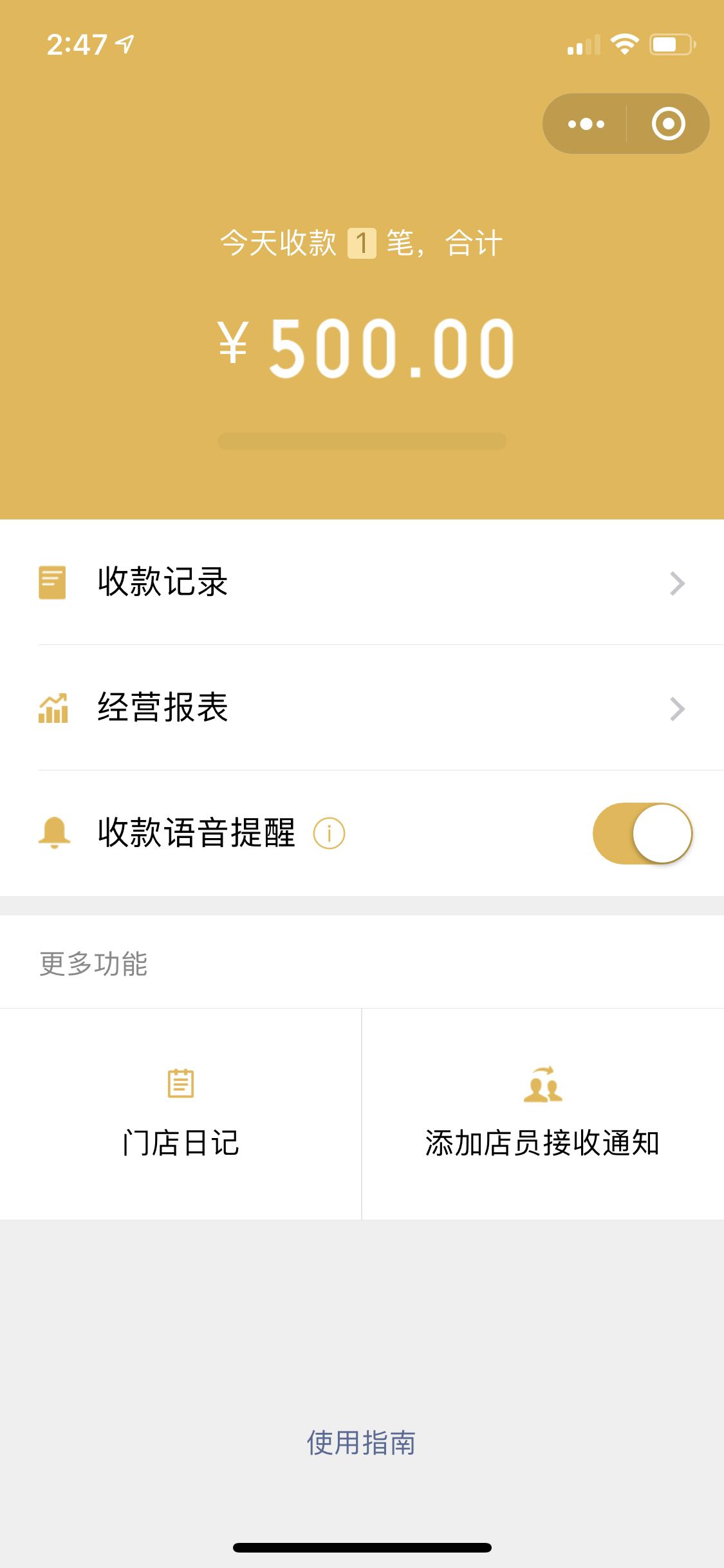 我的申请官方收款码了,可是还没没有更多功能