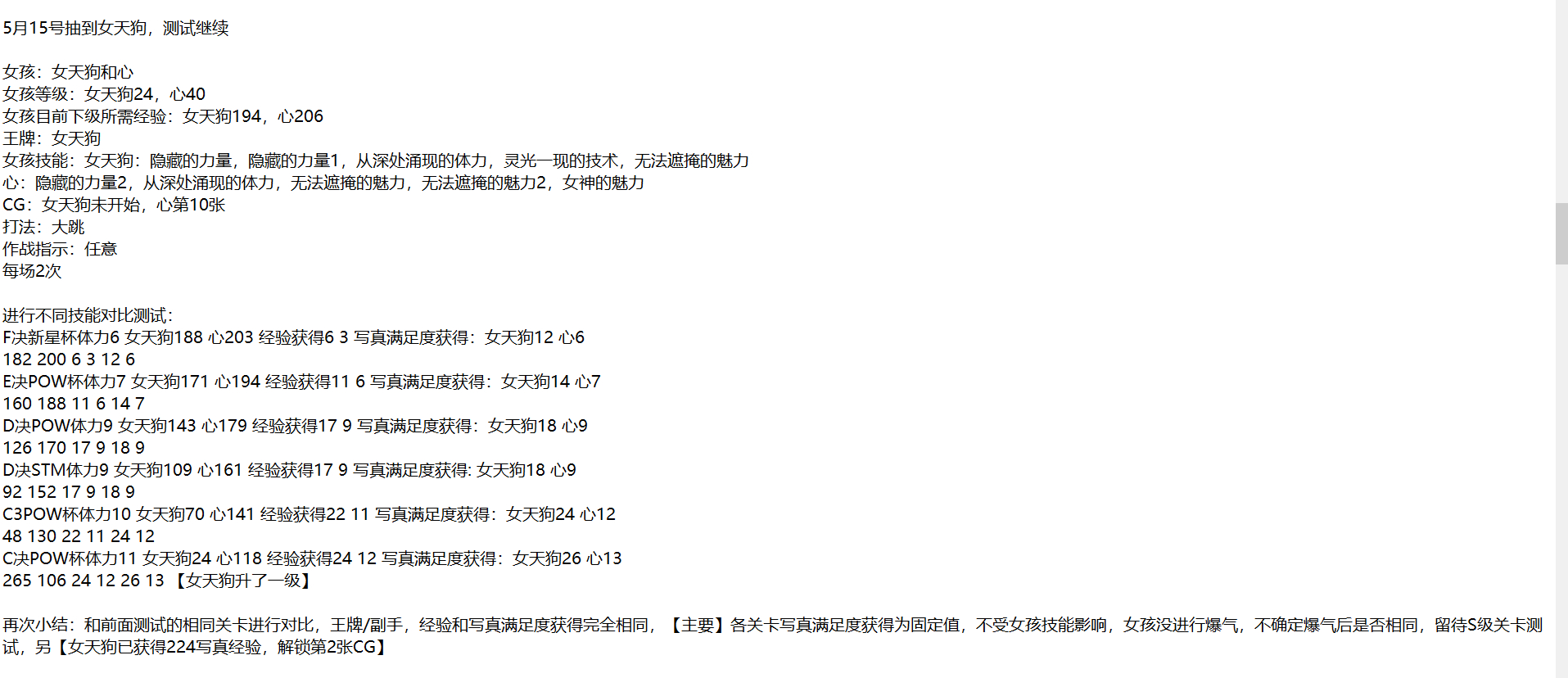 1.【主要】关卡获得的女孩经验和写真满足度,不受女孩【等级/技能/爆气】等影响,不受得分次数【STM杯一般比POW/TEC啥多打一场】影响,是一个固定值