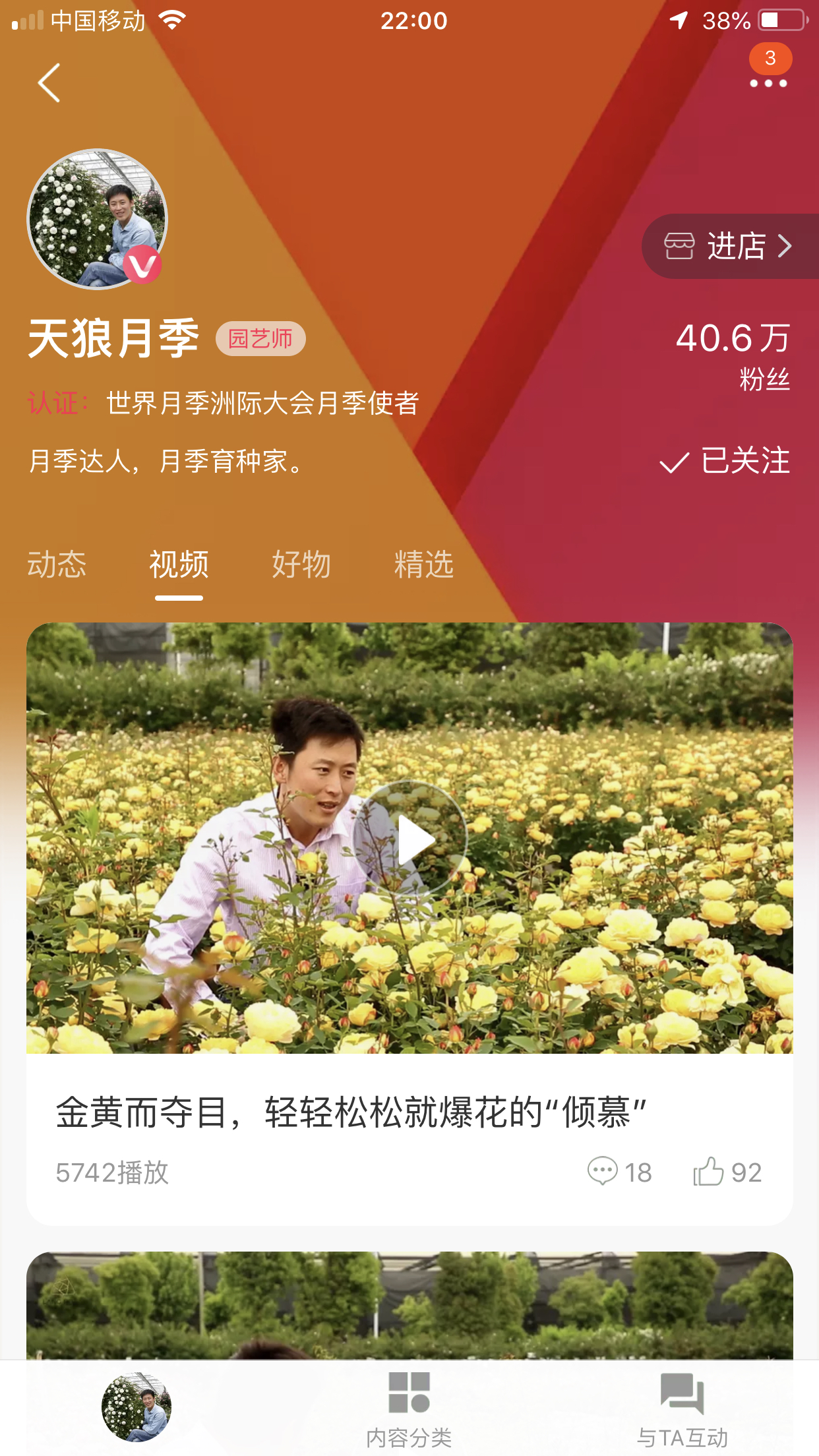 某宝搜天狼月季,点击关注,在微淘里就能看,几乎每天更新视频