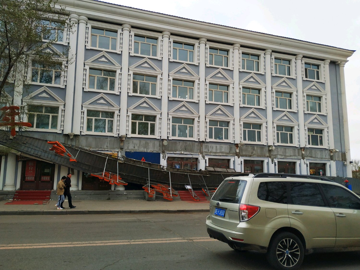 满洲里的风真大啊。。。。房檐都吹掉了