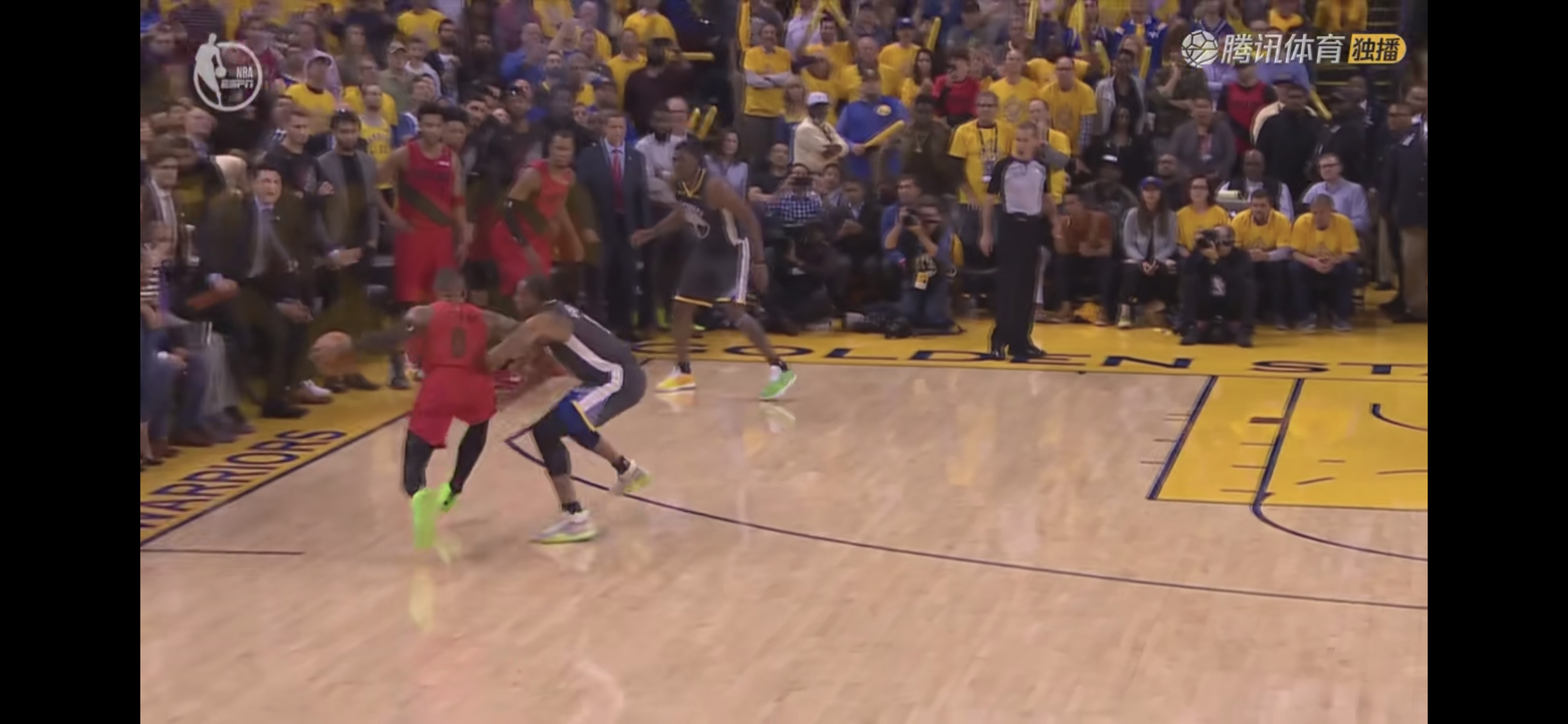 上半场CJ犯规格林。跑上去把格林拉起来。下半场有个球。库里助攻后有点刹不住车。CJ去楼了一下。我TM都以为CJ转会了。