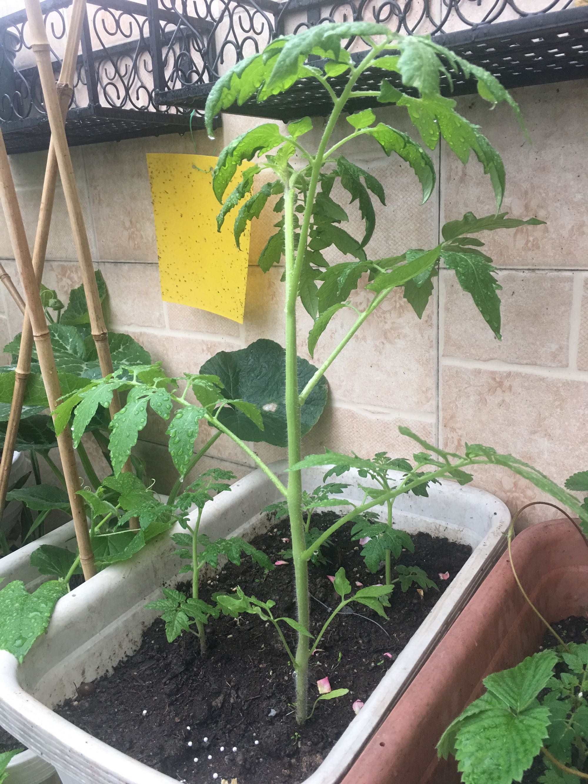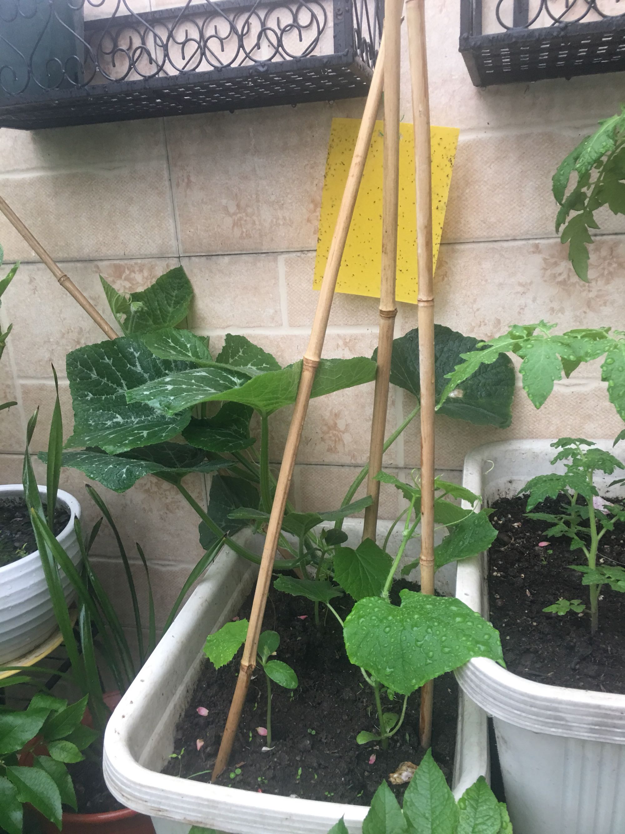 今年忙着种月季,没空也没空间种菜了,到现在也就发芽了一棵南瓜,四棵黄瓜,一棵番茄。其余的番茄都是花友分享的