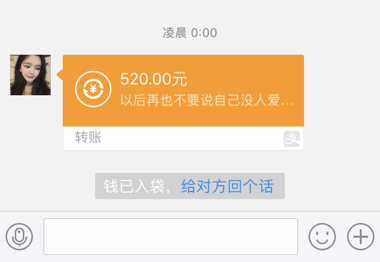 打开支付宝发现 是橘橘发来的520