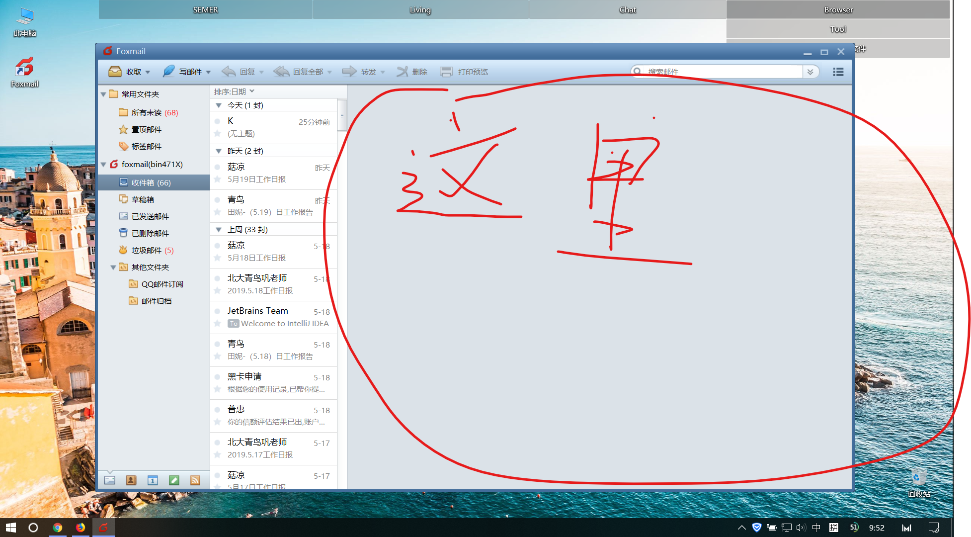 3,重新打开foxmail邮件程序,预览就可以恢复正常。