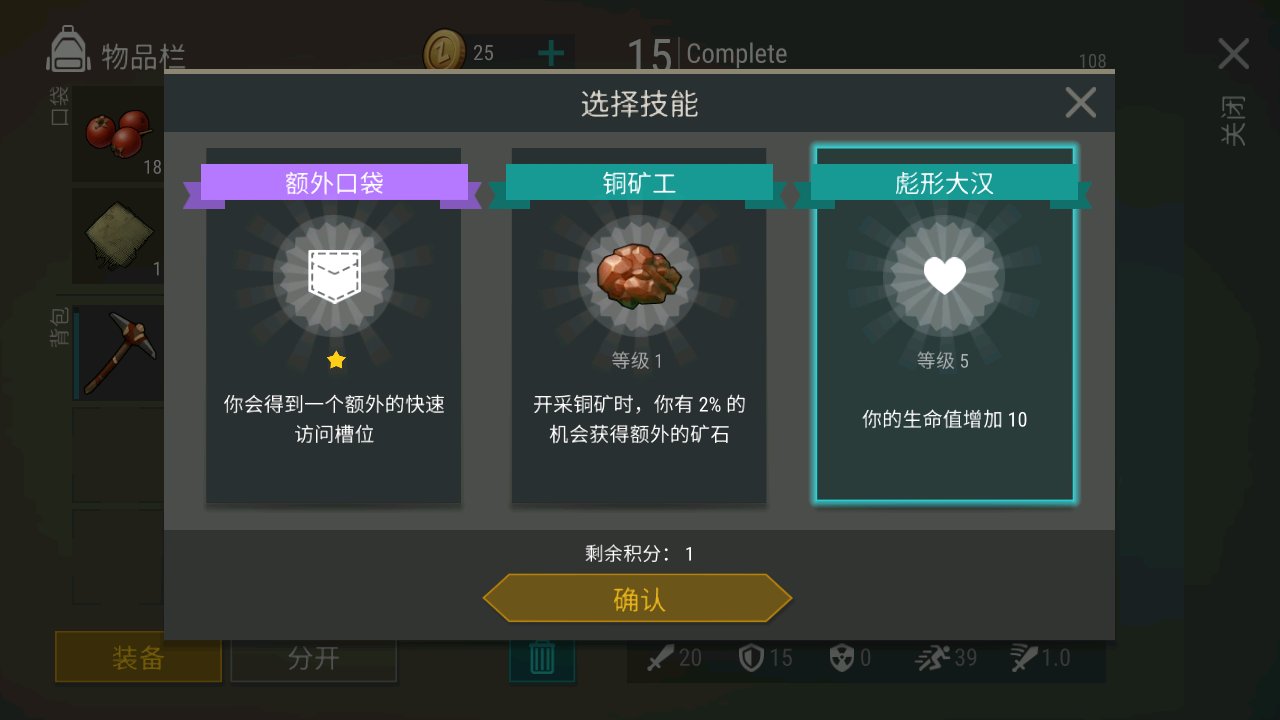 你进入图后会有一个猎人蹲狗熊,你上去时猎人会叫你蹲下,其实蹲不蹲都没事,狗熊只是皮厚有500血,伤害不怎么高,就算是裸装木矛,多带点绷带即可,猎人会辅助你杀死熊,猎人伤害是8点,杀死熊会有4个肉和1个皮,你和猎人对话前可以抓住小狗(那些说没有小狗奖励的都是骗人的),对完话猎人会离开,可以去树洞拿战利品,战利品如图,本身这个图是橡木林的,里面有2棵橡木树可以砍