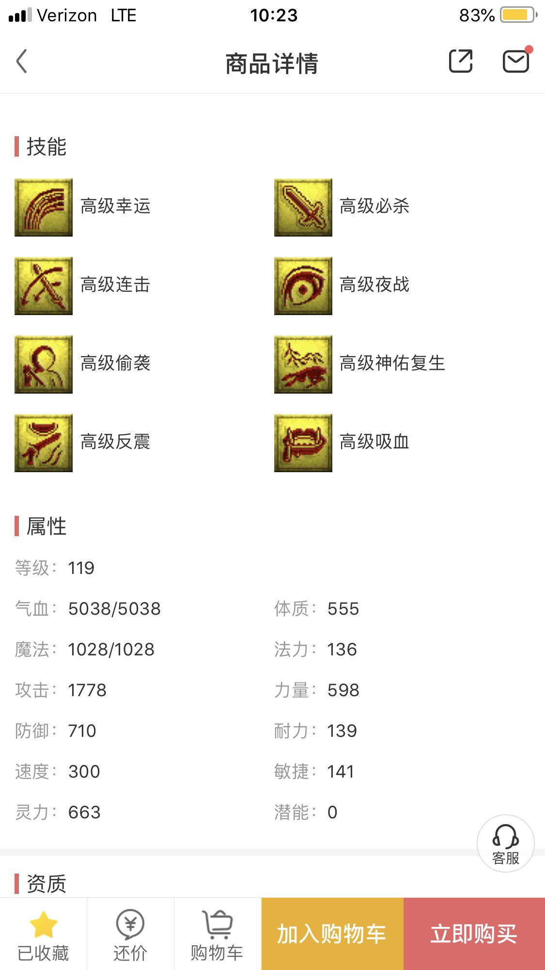 我有只10技能连善110 5000就卖