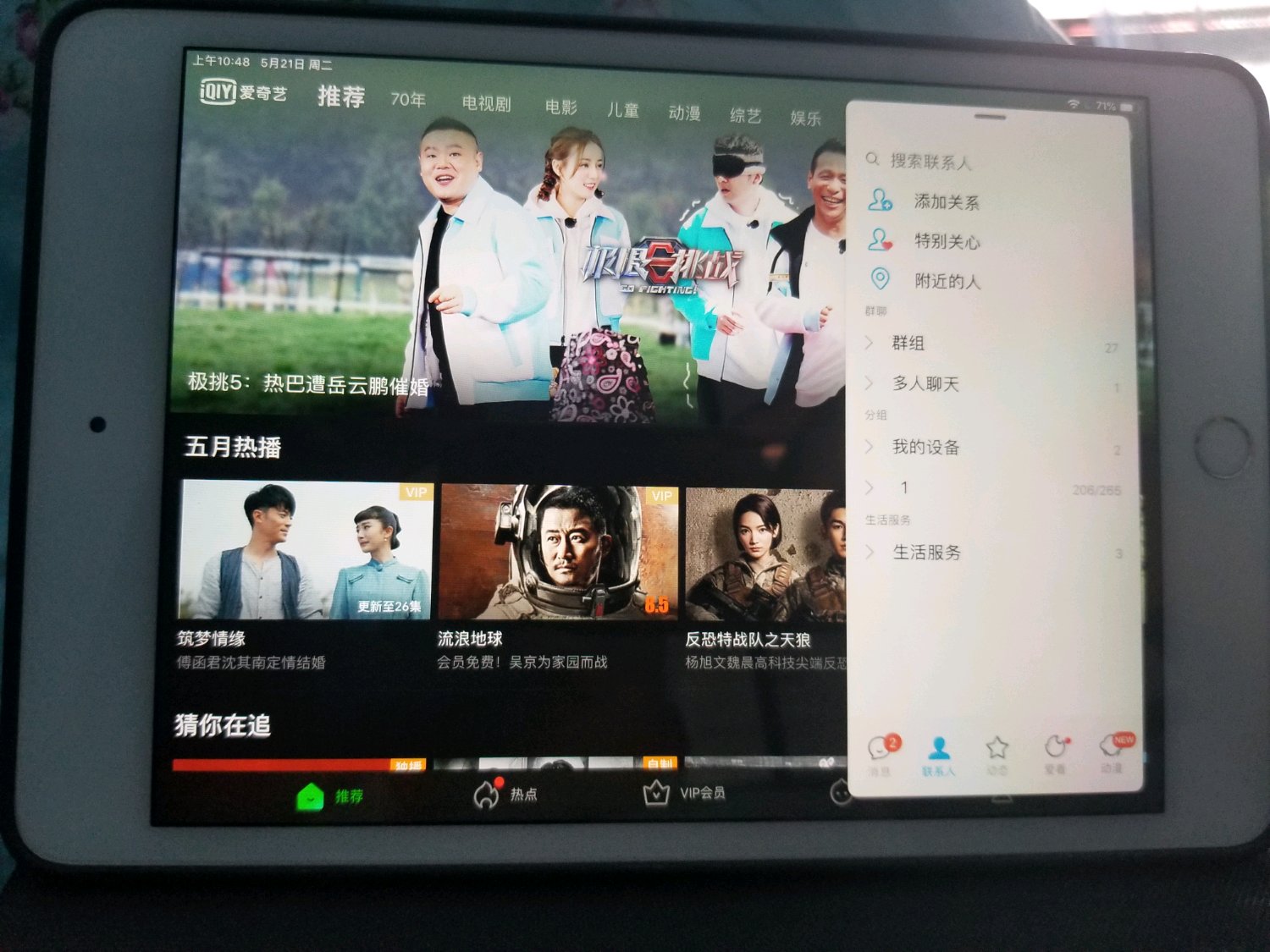 后台关闭微信和爱艺奇,就解除了分屏了,再重开APP就好了