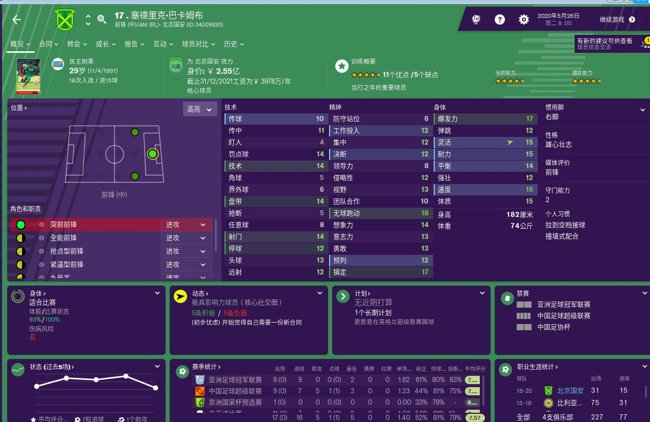 FM2019,巴坎布哪里来的35万欧元的周薪?它的年薪是4000万人民币,也就是500万欧元折合10万欧元的周薪。当然这个数字也比他在巴拉雷尔高得多,而且我也承认今年巴坎布门前能力非常次,