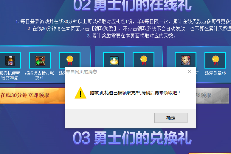领个网页礼包都有数量限制