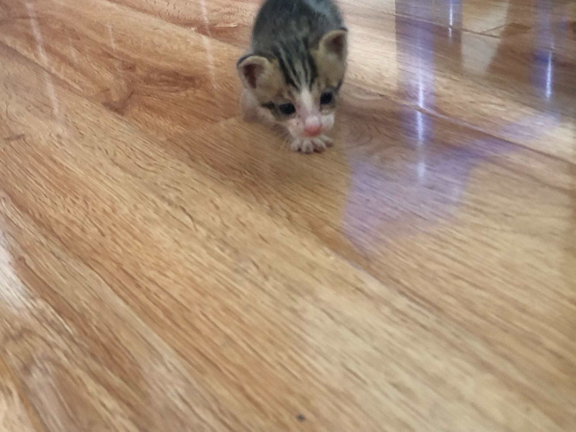 可能是听到了我的声音,两个小家伙慢慢的从破盒子里钻出来往我这里爬,我犹豫再三,最后担心哥哥会因此失明,于是决定把两只小猫带回家。