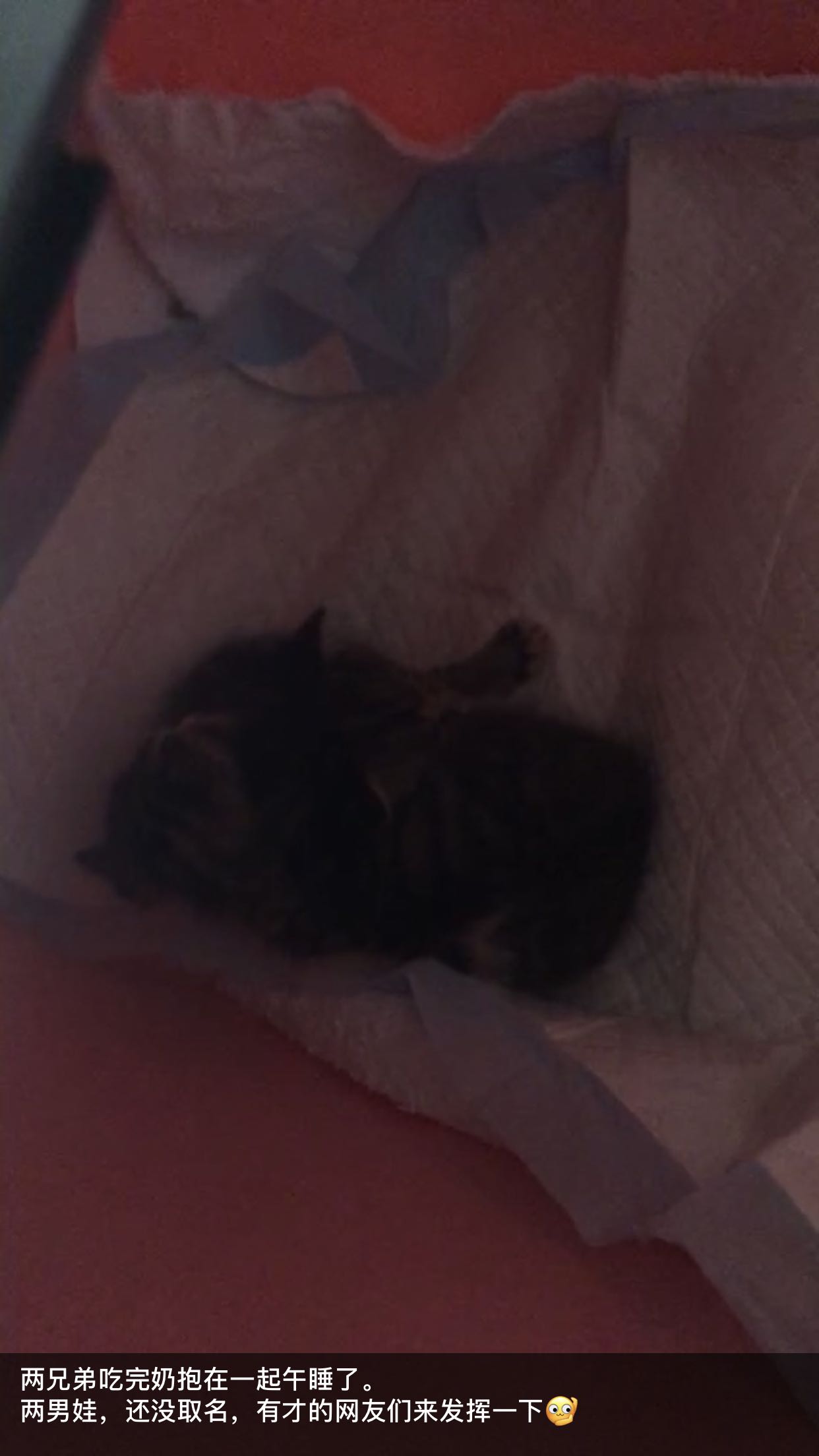 两只奶娃估计20天左右大小,精力很旺盛,吃完奶睡着了