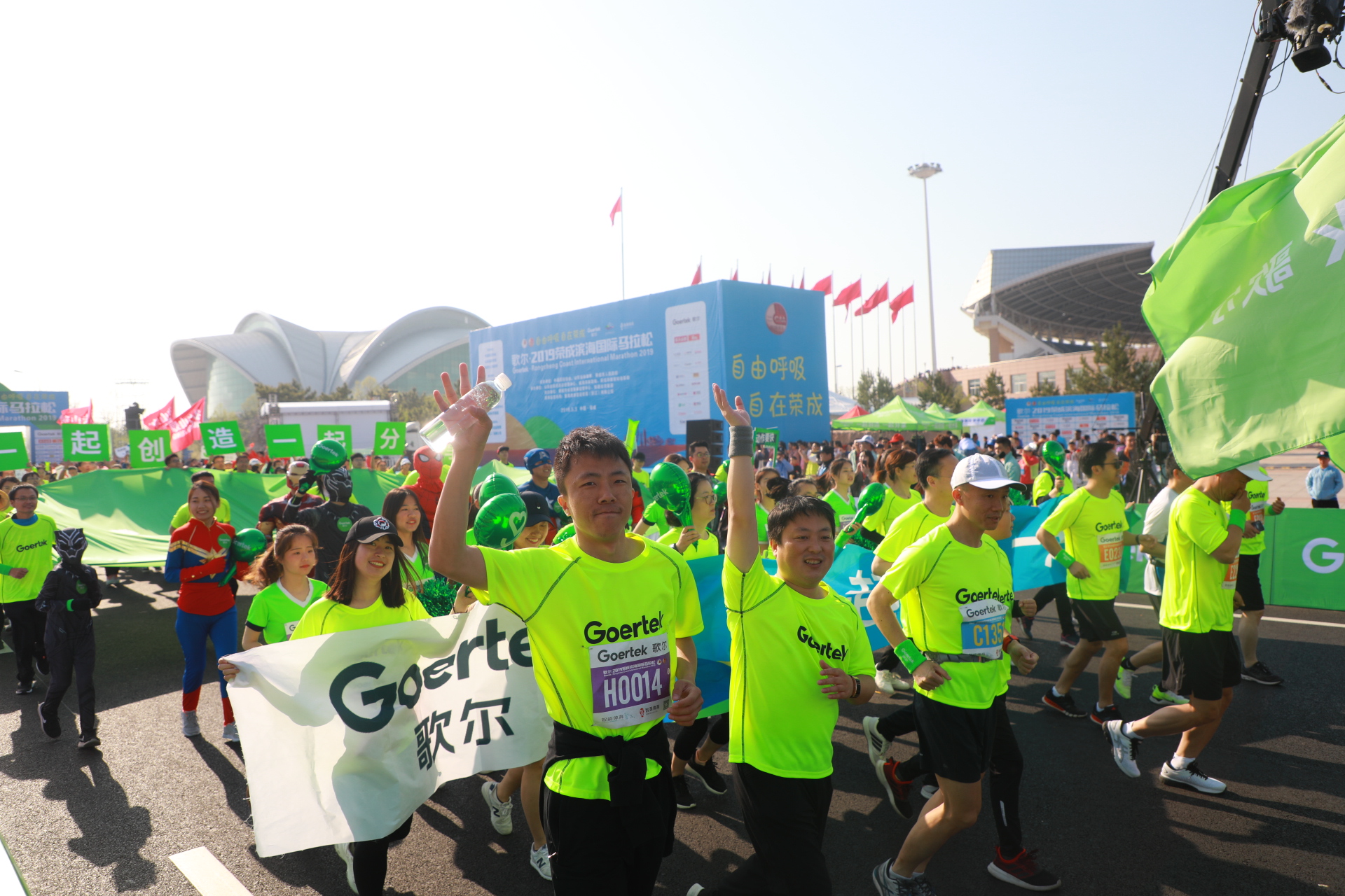 5月3日,歌尔•2019荣成滨海国际马拉松在市体育中心鸣枪开赛,来自中国、肯尼亚、比利时、韩国、加拿大、日本等17个国家和地区的1.2万名选手,在“最美赛道”激情开跑。本着科技创造健康美的企业使命,歌尔集团首次独家冠名赞助荣成滨海国际马拉松,为本届比赛加持科技元素,助力赛事达成健康与美的目标追求。来自国家体育总局、威海市政府、荣成市政府的领导与董事长Bryan一起出席了鸣枪仪式,并于上午7:30分为比赛鸣枪开赛。