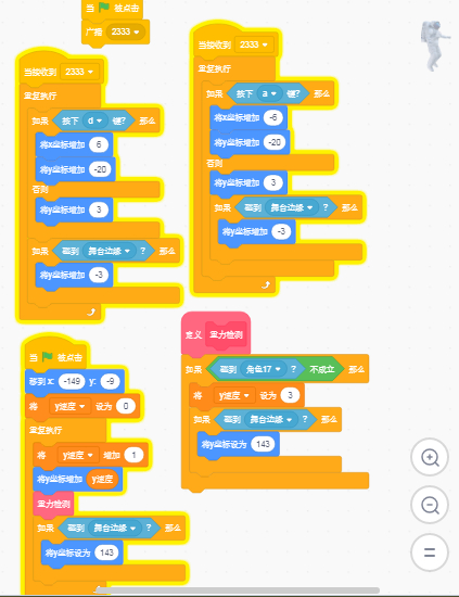 碰到地面时重复执行y坐标加20就可以了,可以新加一个自定义模块,可以做到不刷新屏幕