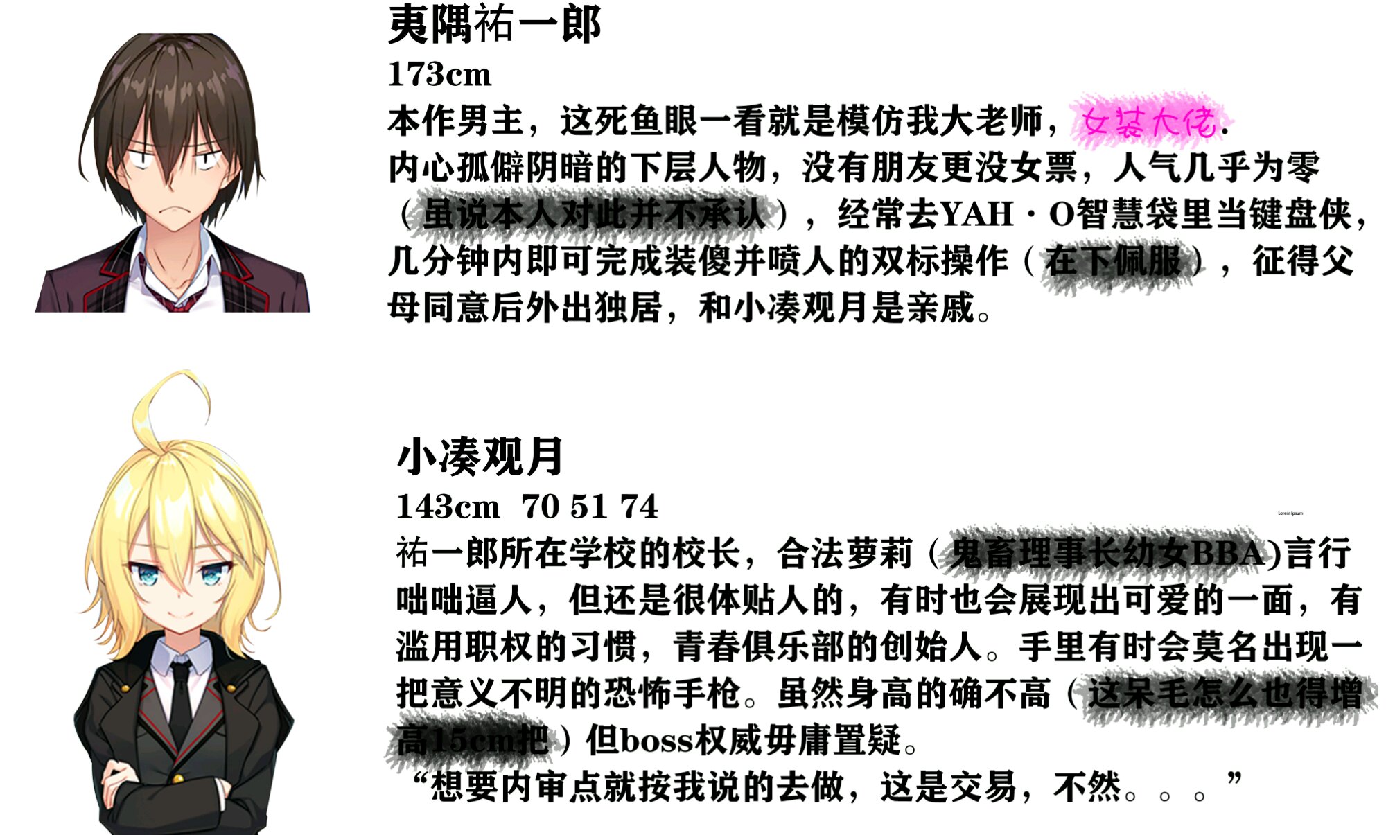 人物介绍就在这里,这次我应该是没有剧透的,再说这作品也剧透不了啥