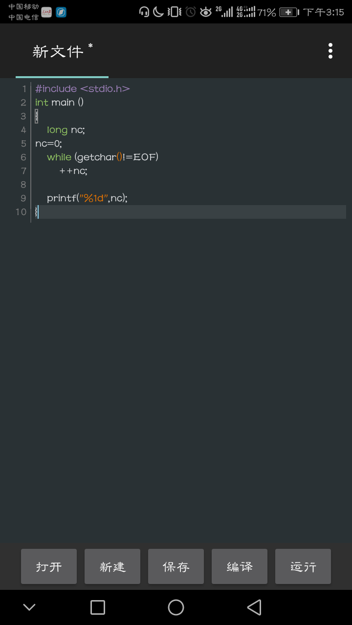 其实和这个没关系,他主要把printf写到while里面去了,当然写错了达不到预期效果,eof可能是因为习惯原因,总之c4droid里面最好用换行符,用eof老是有问题。