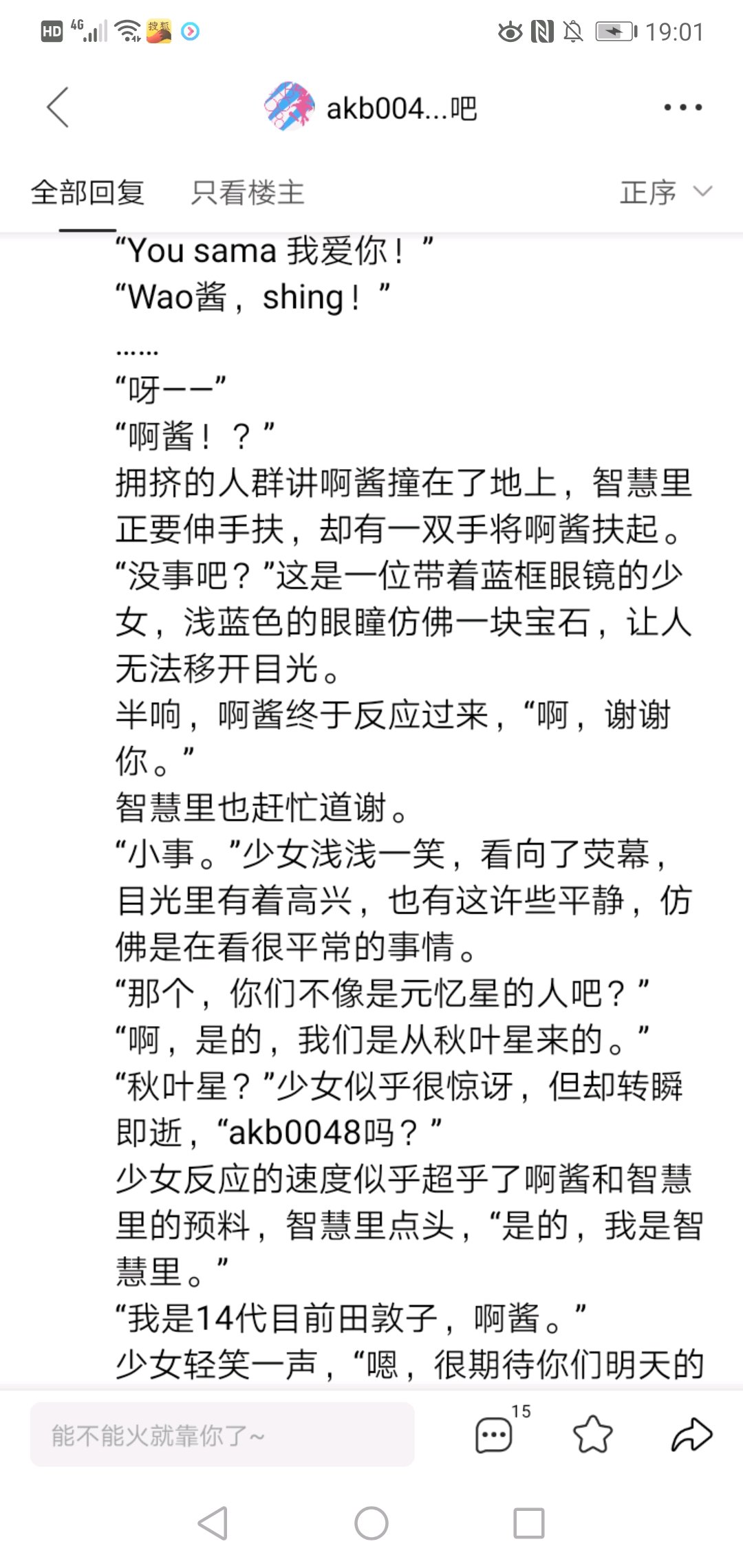 翼的突然登台,使观众席内一片哗然,“大家请安静一下,这里有事情宣布—akb0048下一个live举办决定——元忆星live。”