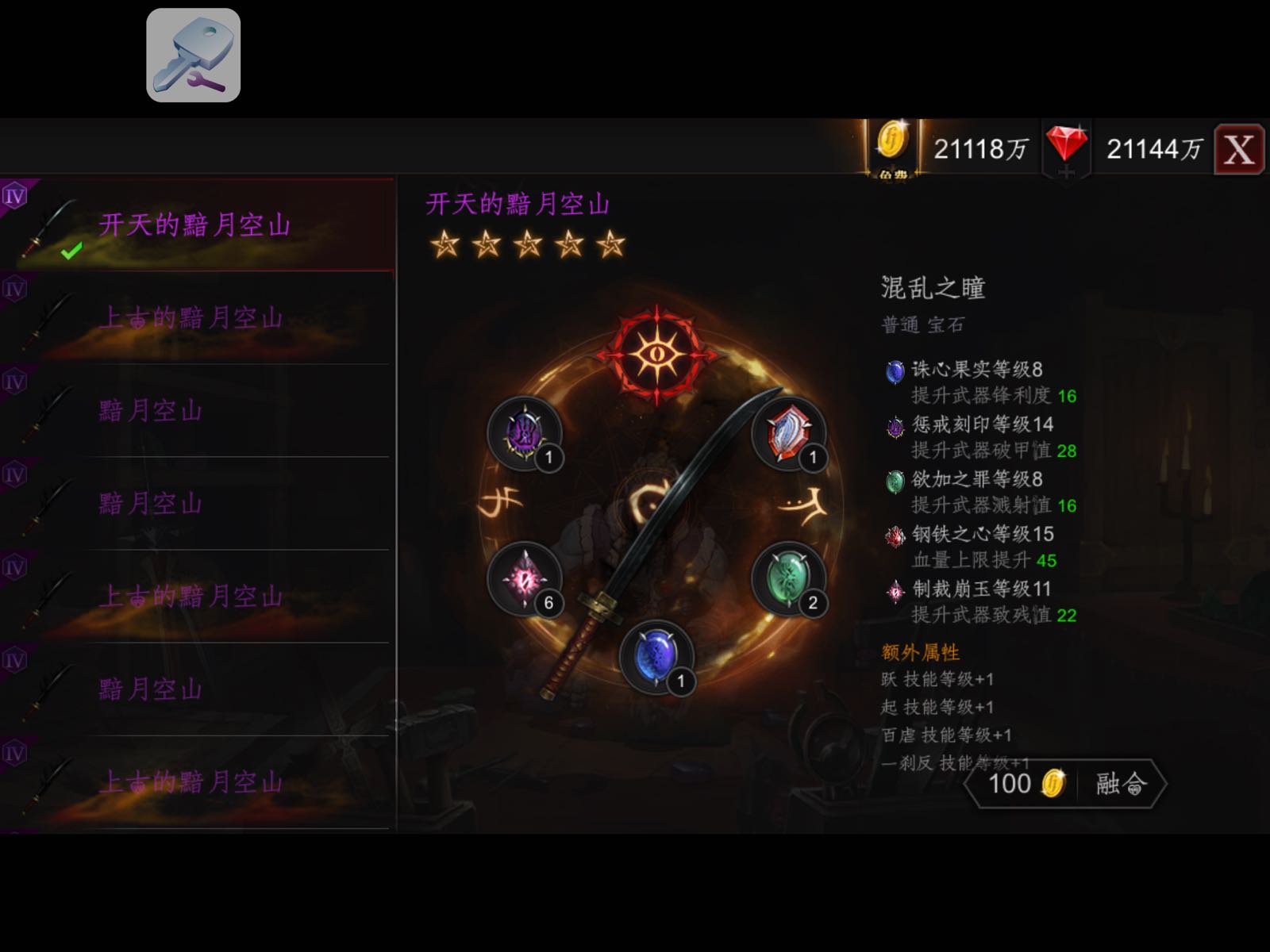 我用GG修改器,多准备几套宝石,以同样的顺序镶嵌吞噬,然后搜第一个宝石等级,再吞噬再搜,几下就搜到了。
