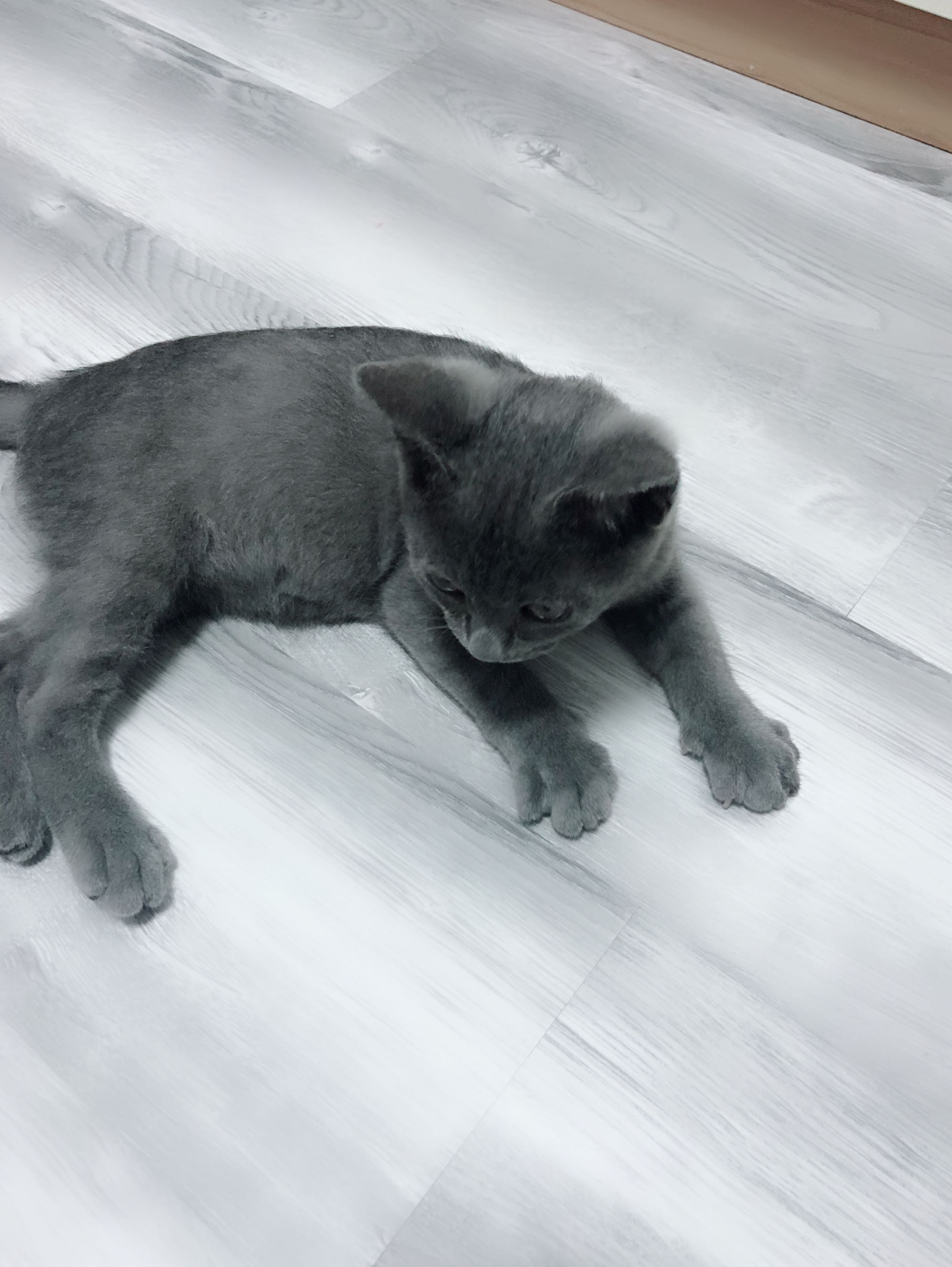 是英短,发腮看基因,有一点点软便,吃的如果是无谷粮,粑粑就会颜色偏深