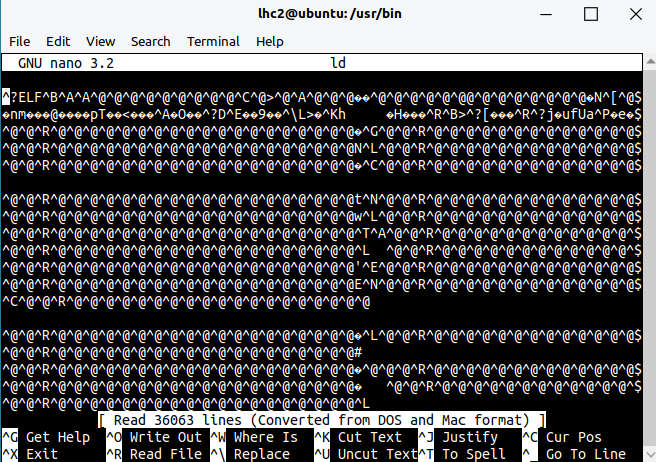 求教,怎么解决/usr/bin/ld文件乱码问题