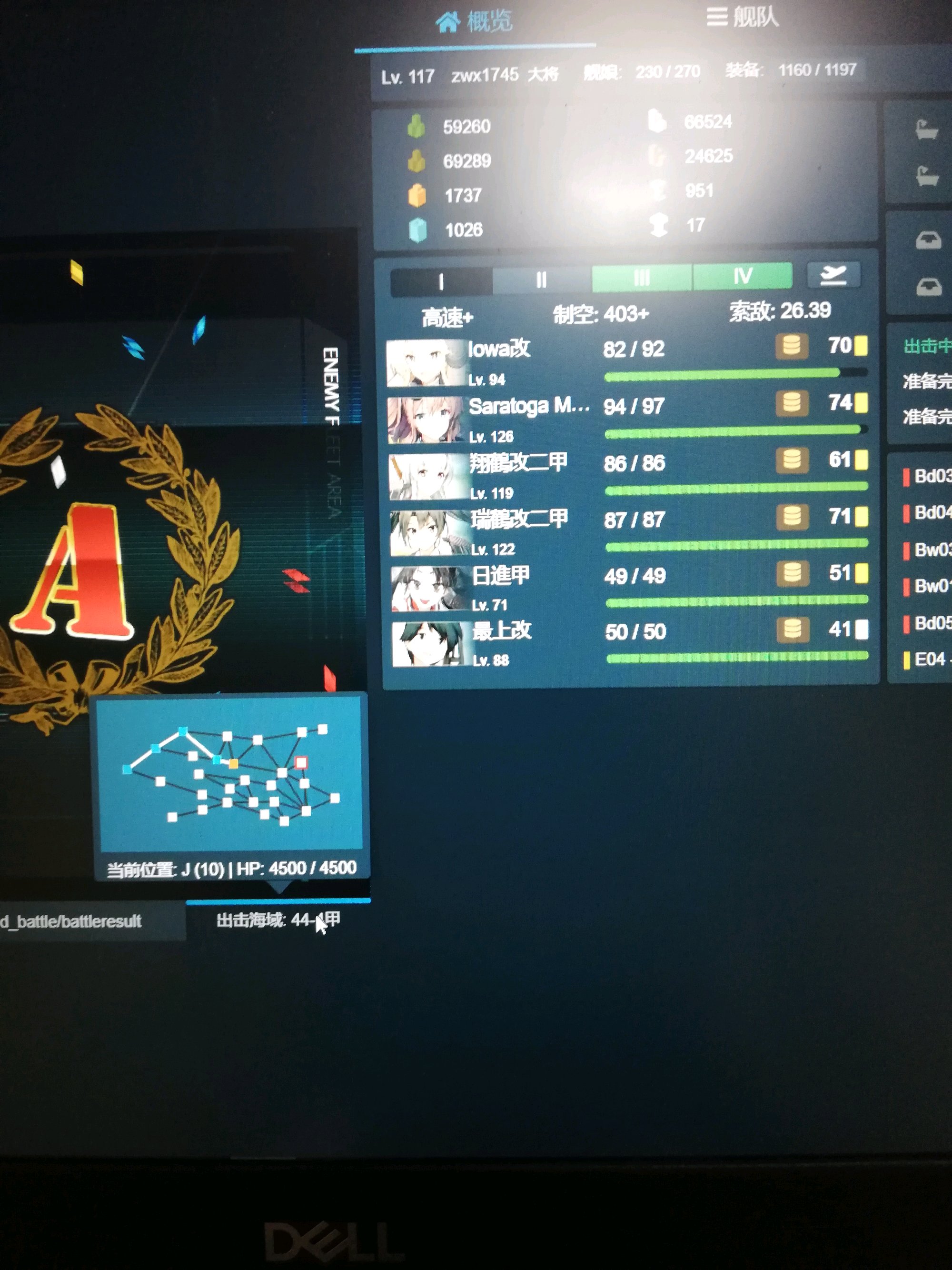 我会电脑截屏,请别吐槽我手机照相。。。事情是这样的本来打算甲甲甲甲甲,e4甲解完所有迷了,但是教授和撸爷斗地主并不打算放过我,于是决定试试高速+能不能只打一个门神lu,迂回一下教授,试过2bb4cv,1bb3cv,1bb3cv+4电探,但全都沟教授,现在准备切丙快乐咸鱼,剩下的资源可以在切丙之前帮大家做任何测试,北京时间晚上9点半左右切丙,打甲的同志快来问我