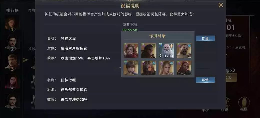看似简单的演武场其实内部大有玄机,演武场内拥有独特的祝福机制,神祇的祝福会对不同的指挥官产生影响,领主们需要根据祝福情况调整指挥官阵容,以获得最大的属性加成。