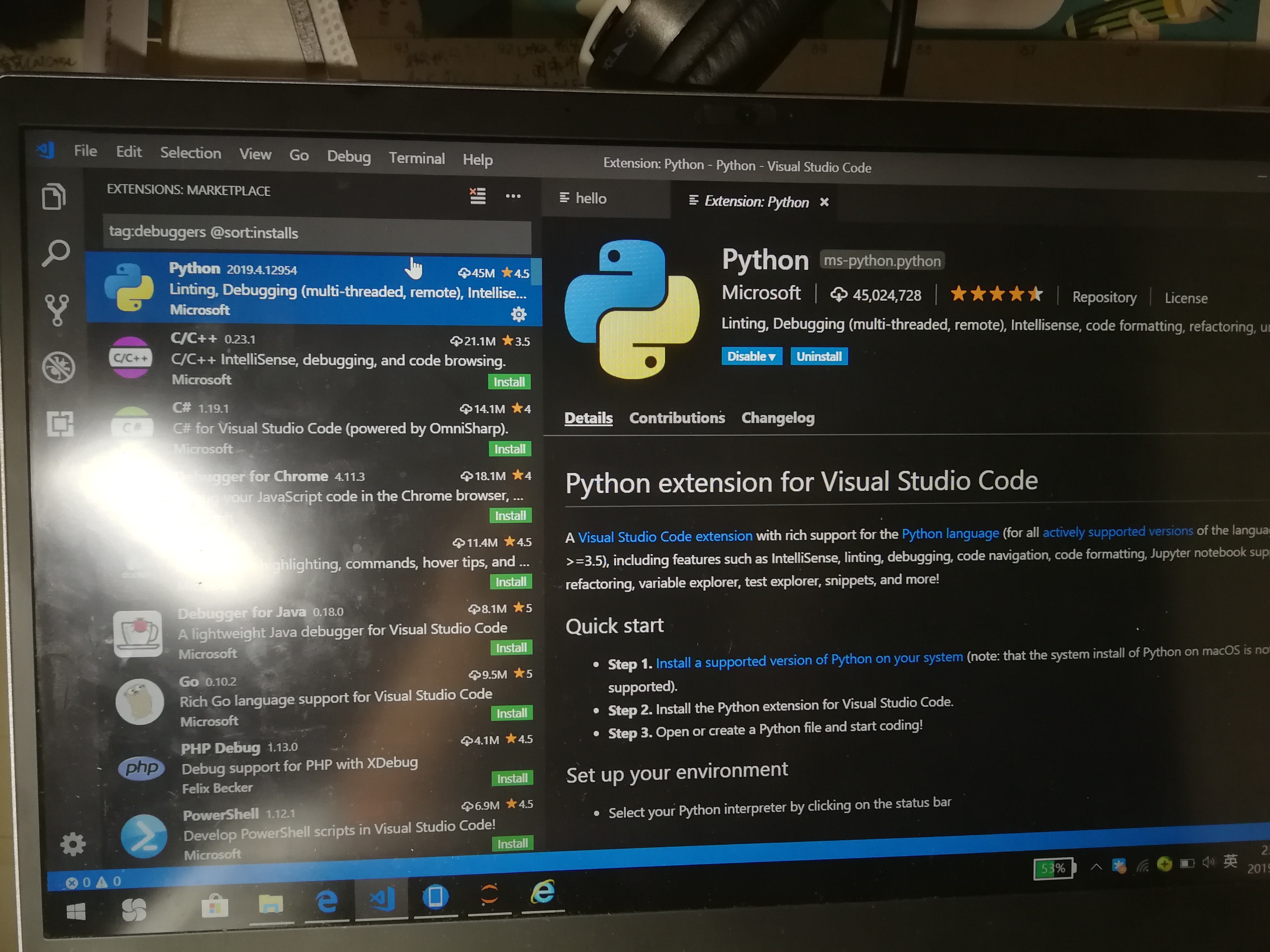 此时直接在框里打python是没有反应的,点击more以后就是下面这个图