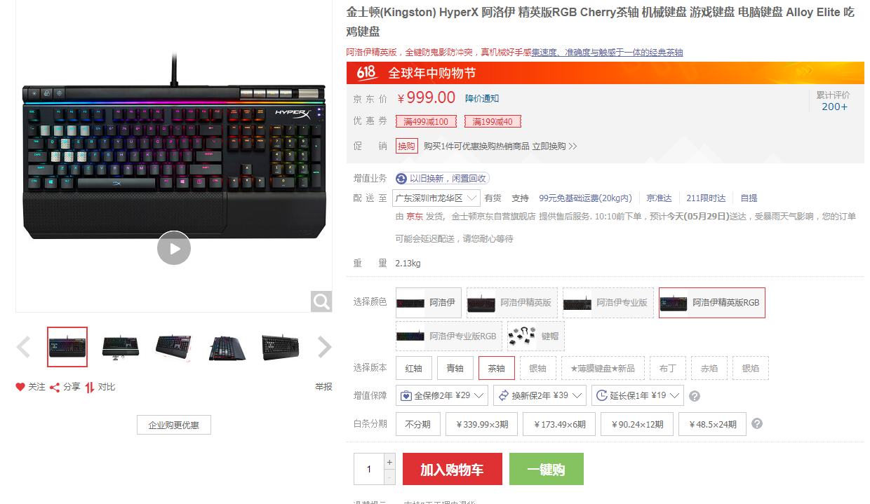 然后当时金士顿的一款机械键盘,原价1099