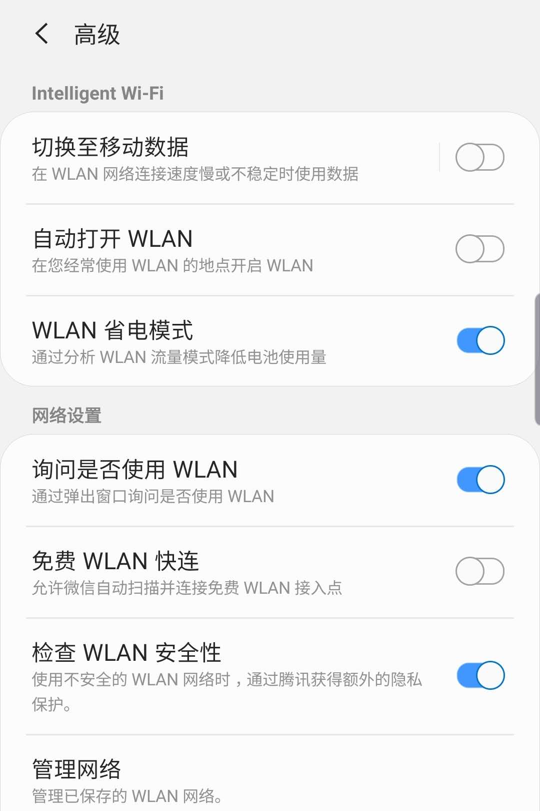 连接设置里面,不用的都关了,wifi开省电模式,还有就是应用程序里面那些根本用不到定位的软件还让你开定位权限的就关了。大致总结了这些,有什么问题大家一起讨论交流。我这也是体验时间短,才一周。后续还有待观察。