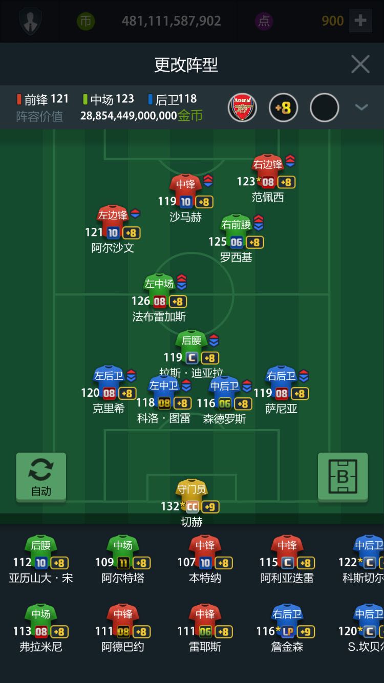 这套呢就是踢排位的时候用的,已经好久没动了,有时候联赛踢强队的时候会派这批人上
