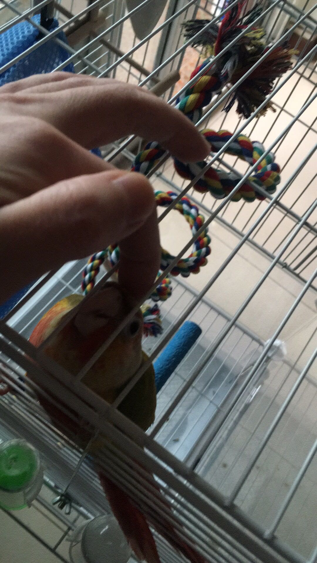 刚断奶的鸟儿到家了,刚回来就上手了,在笼子里也是各种求摸,特喜欢钻头发。就是每次喊他都飞肩膀上,不肯飞手