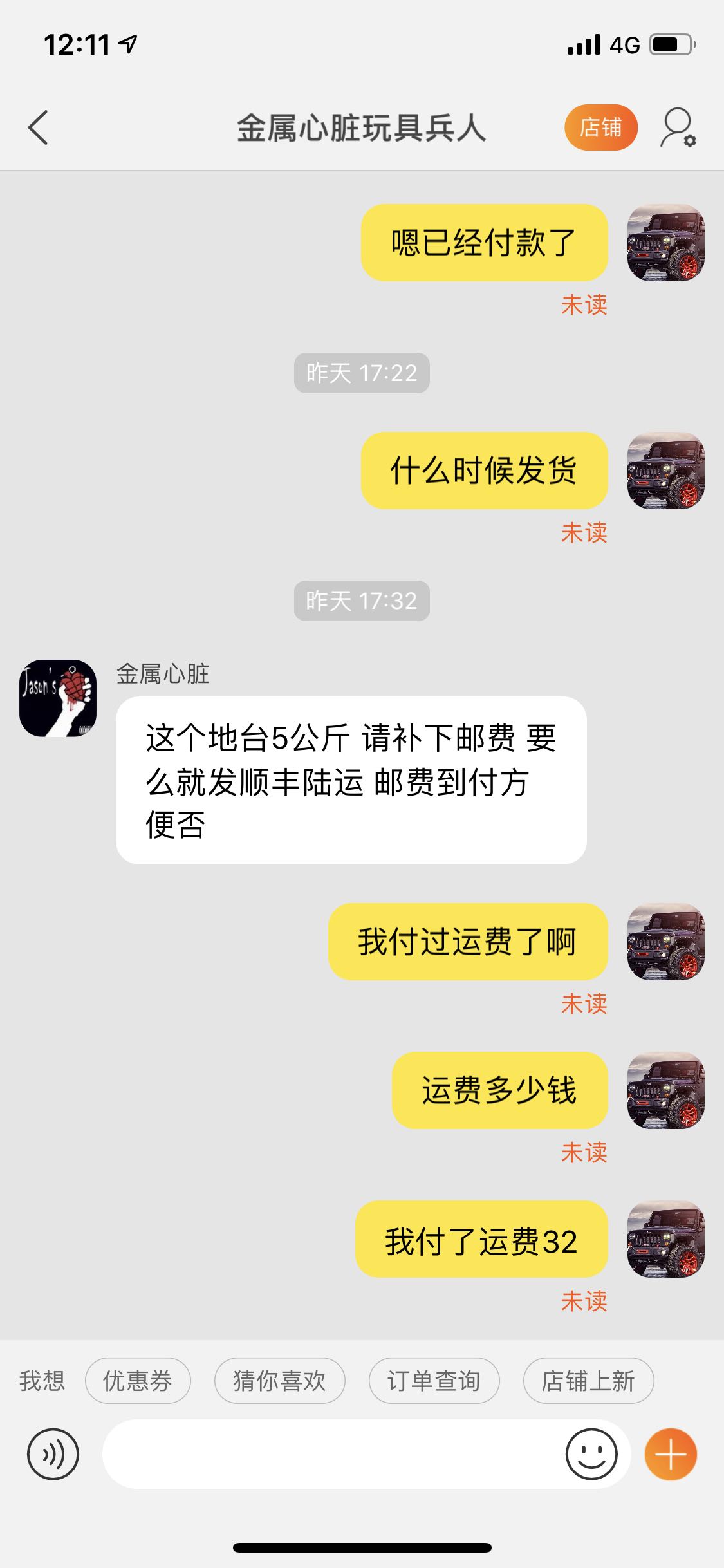 人家店主早就把你拉黑了,你看都是未读