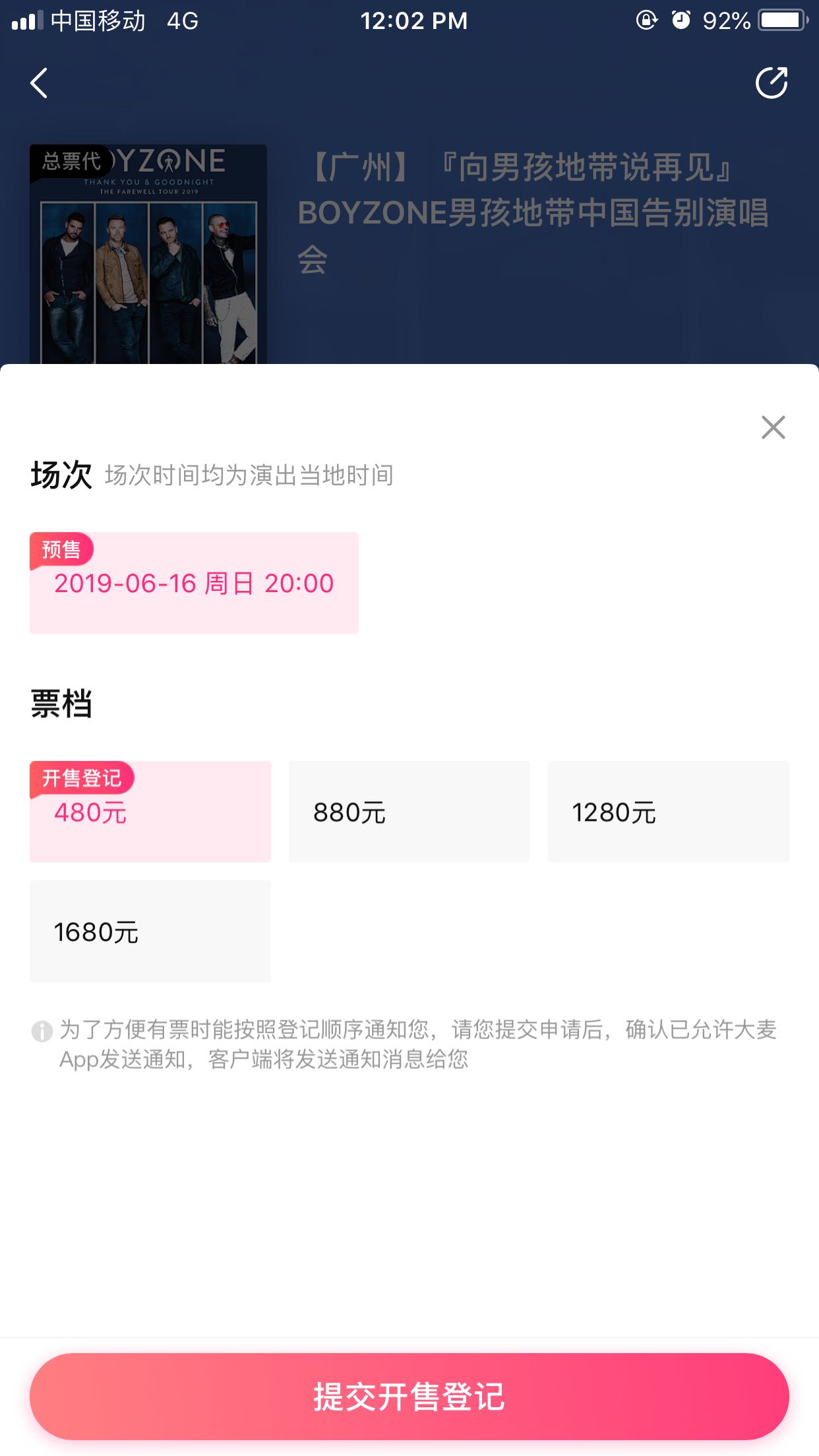 大麦天猫那边说480已经卖光,淘宝其他黄牛都在抬高480的价格,基本都是抬高100,但是其他面值的票价全部都是低于面值100-200卖