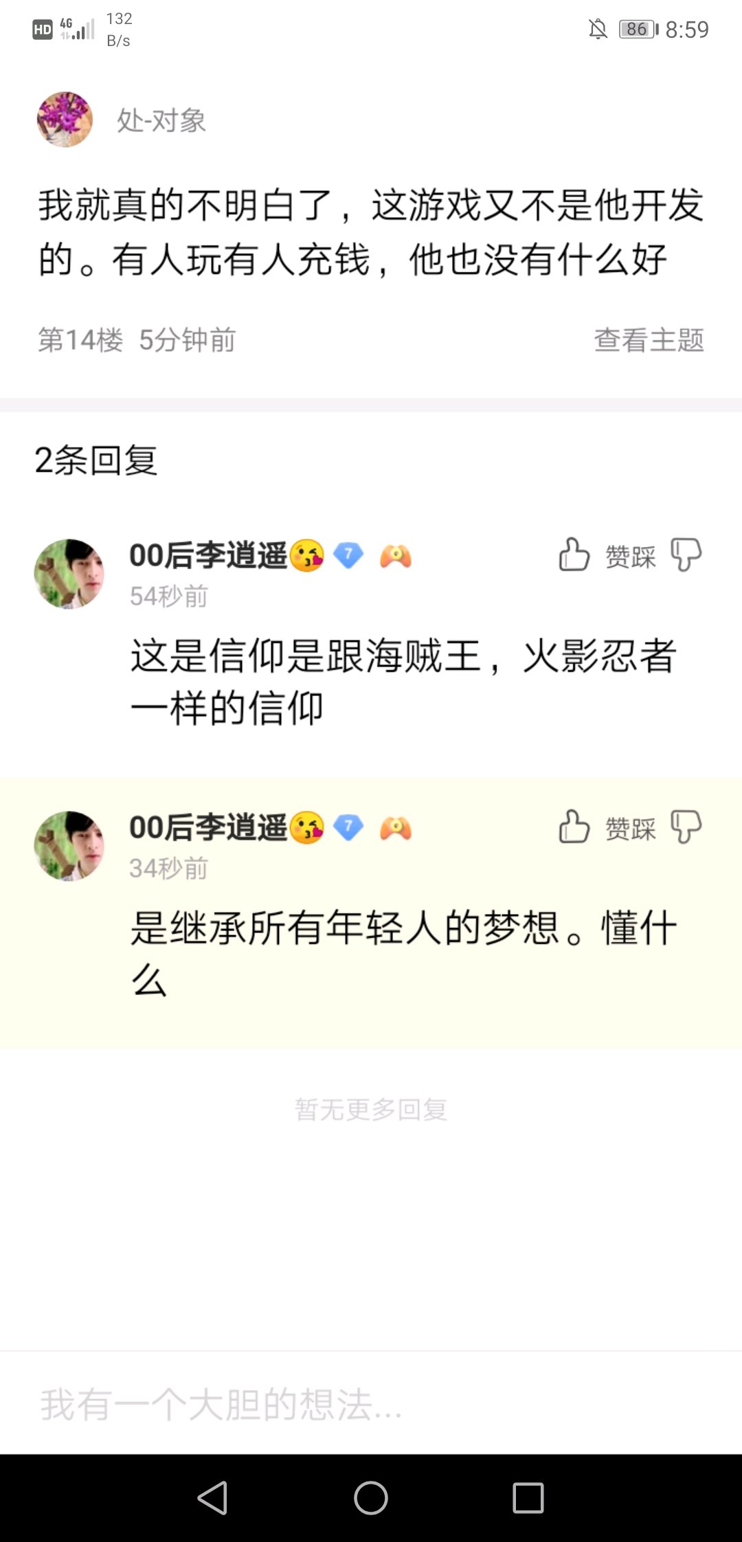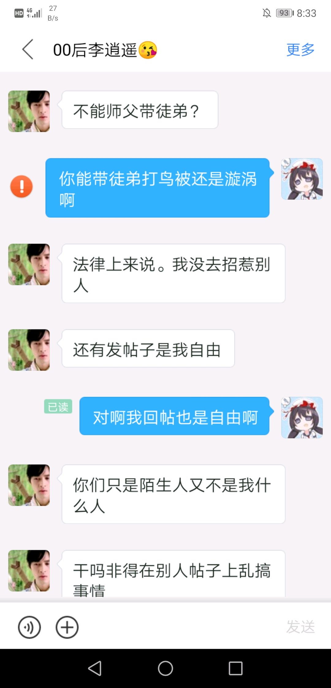 我就是应为这点在怼他,正好现在又闲的无聊