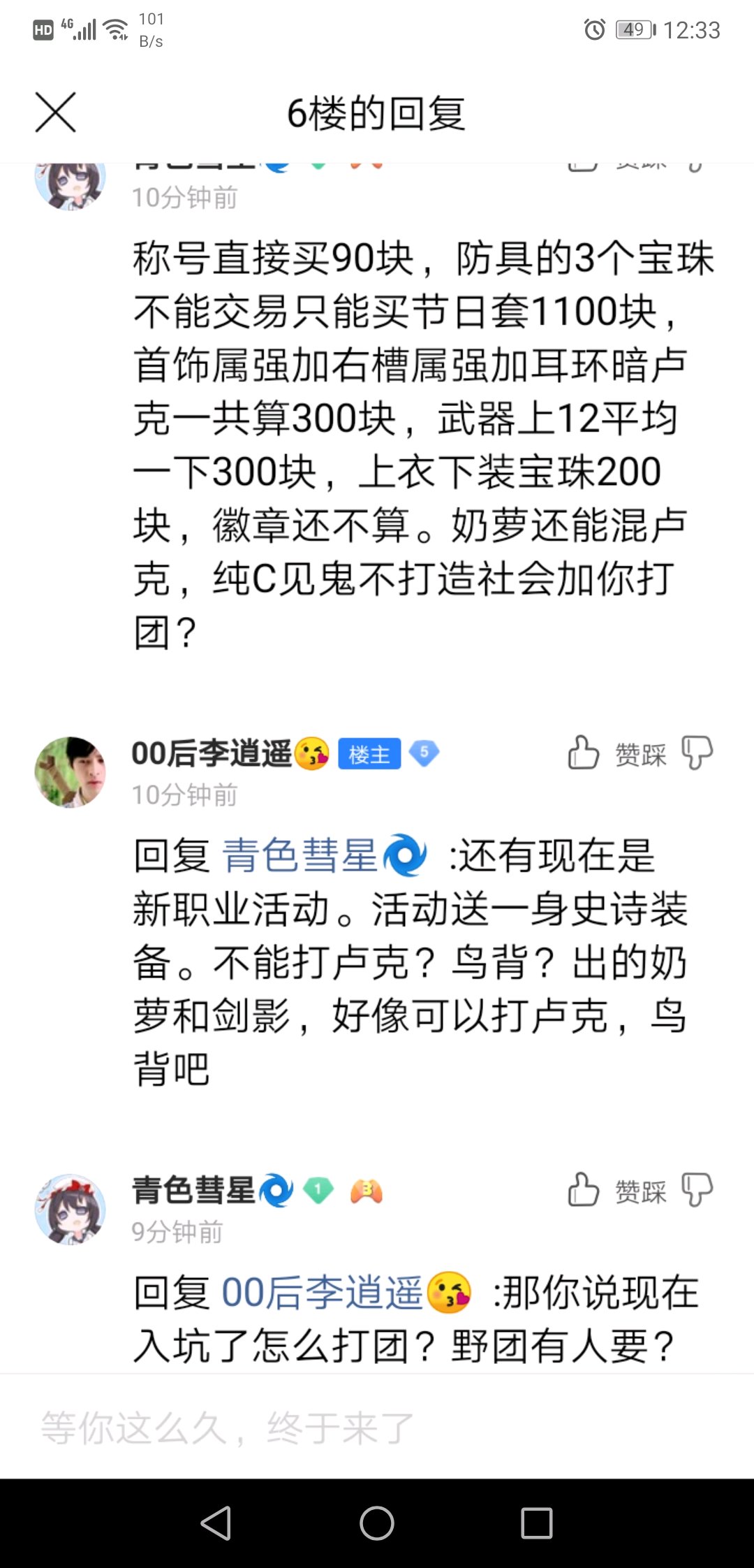 先放招新贴中的回复