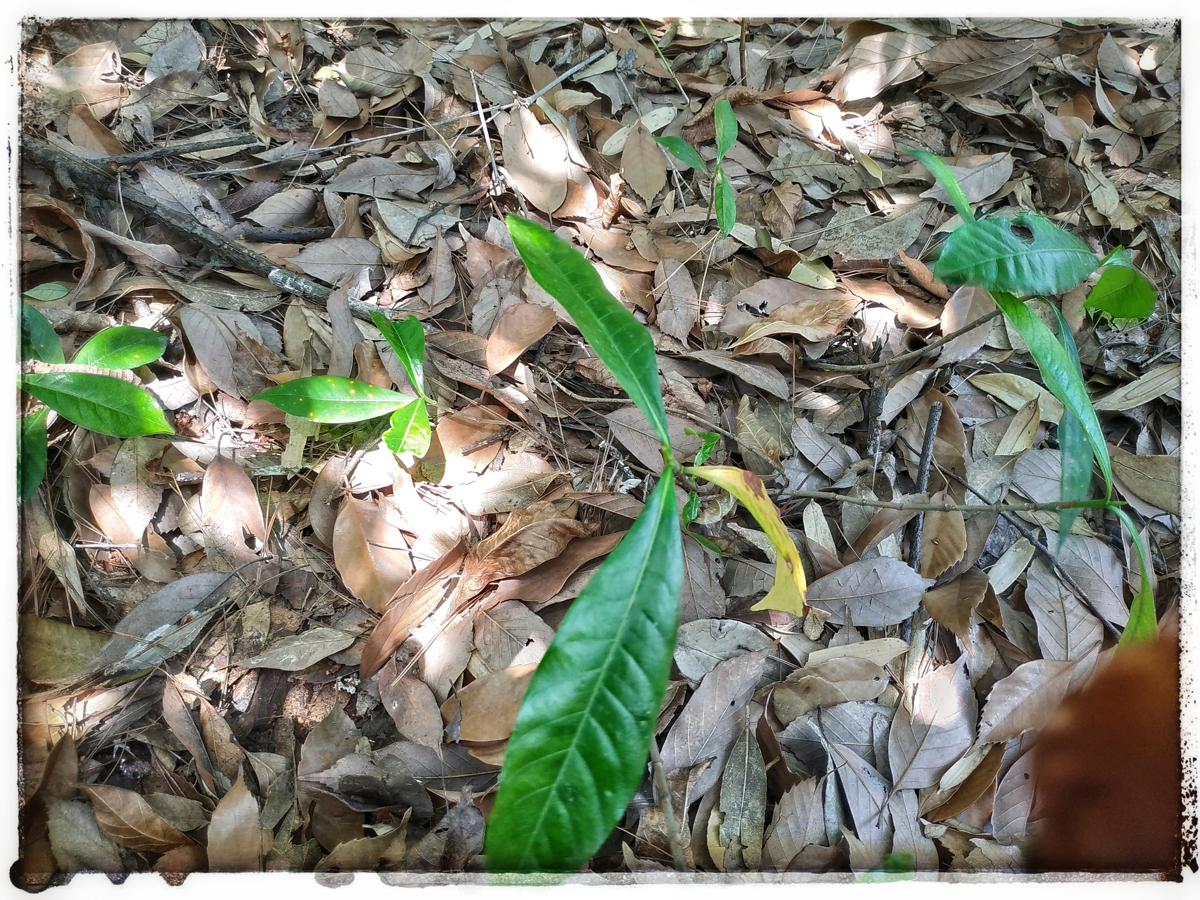 考察了一下,这一片山栀子花群落生长良好,虽然山体贫瘠,但适合其生长。一些小的发起来,说明有动物采集果实传递后代。采了最后一颗小的做个小盆景玩玩。