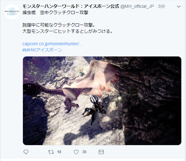 空中钩爪攻击:跳跃中可以进行的钩爪攻击,命中大型怪物能抓住它