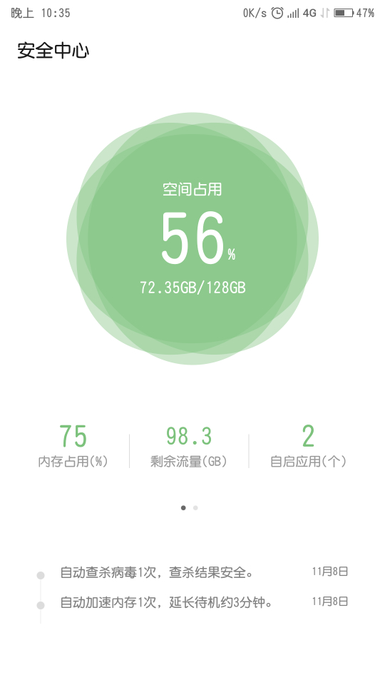平常用清理以后也就40%多,就是前几天重启了一下手机内存占用就下不来,都不知道怎么回事,清理也没用