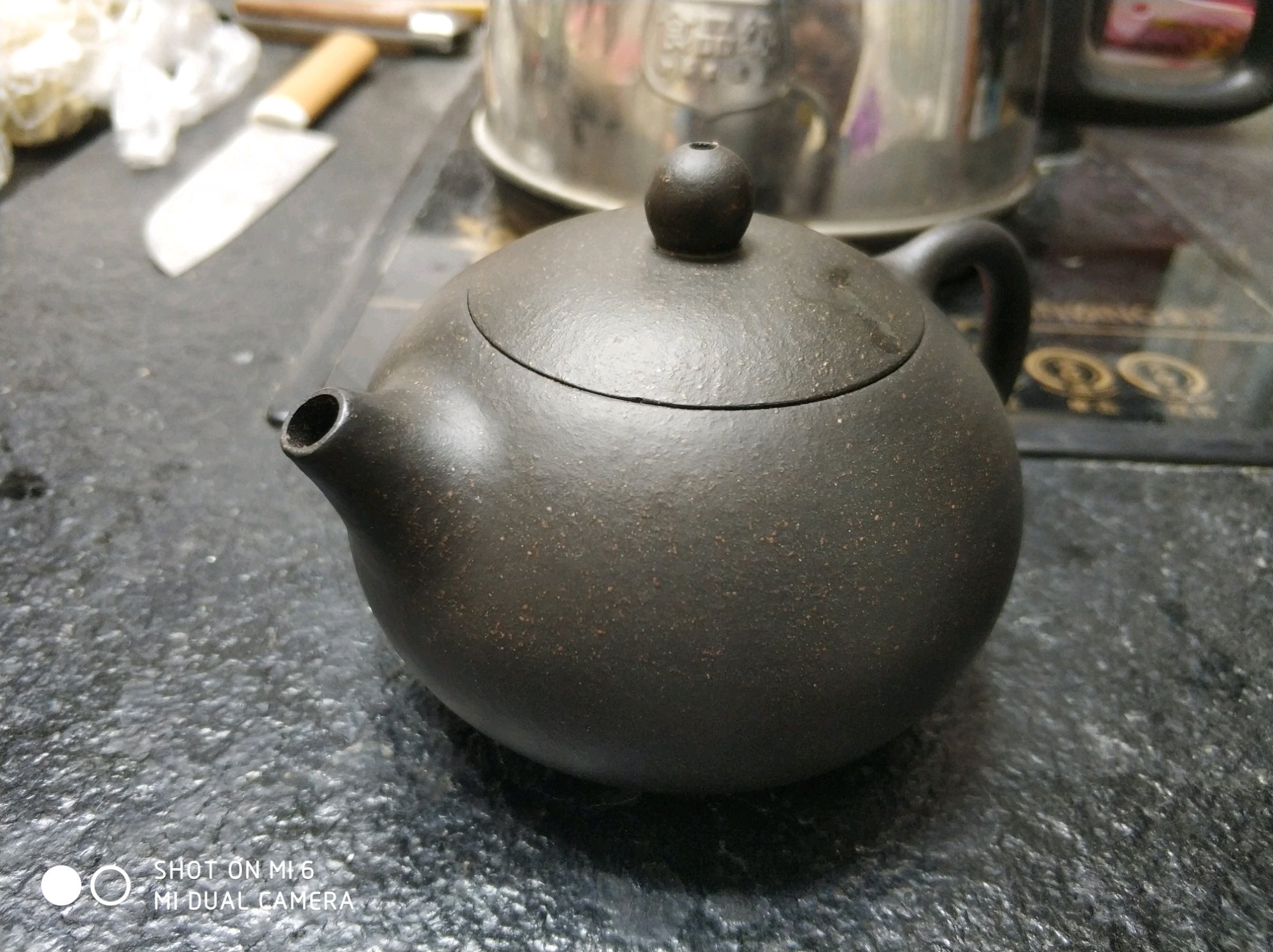 这个应该是网上买的那些黑金砂吧?其实我觉得喝茶关系不大的,只要它没毒
