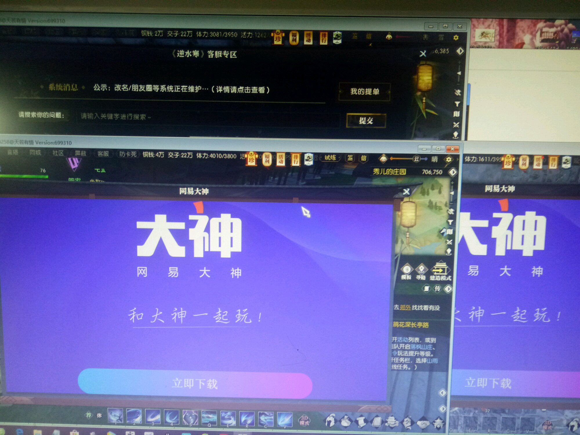 这是当时打开客服界面的情况。两个小号都打不开。大号没问题