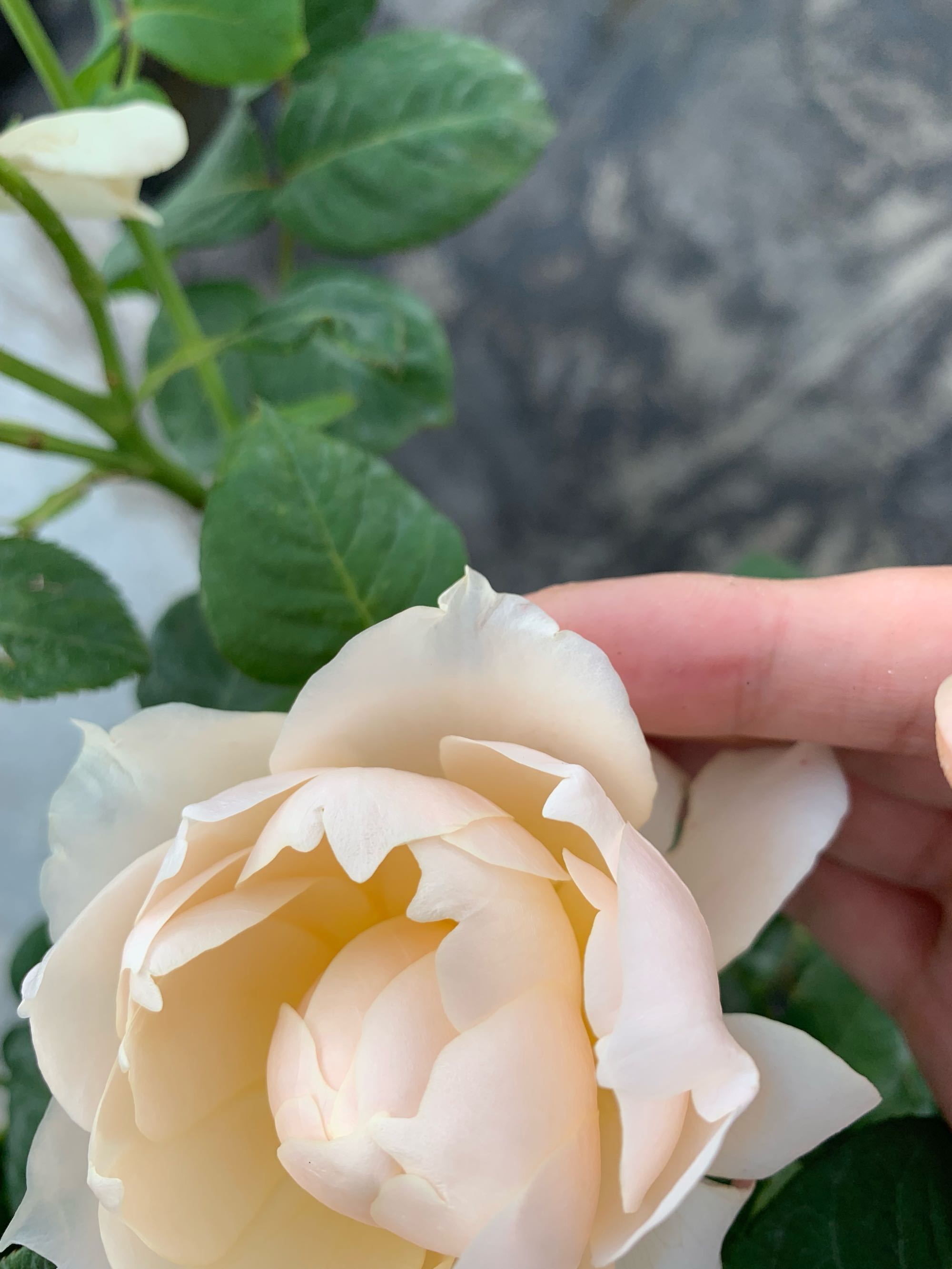 花瓣质感类似于羽毛那种自带磨皮效果,花瓣外侧是米白色,内侧淡黄色,凑近闻有一股很浓的苦杏仁味(也许就是传说中的没药香?)多头,直径大概8厘米左右(还没完全打开)