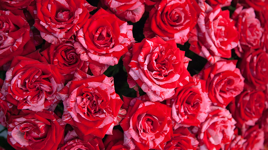 生活照,花瓣越接近边缘红色越深,越接近中心白色越明显,形成红白渐变的色调