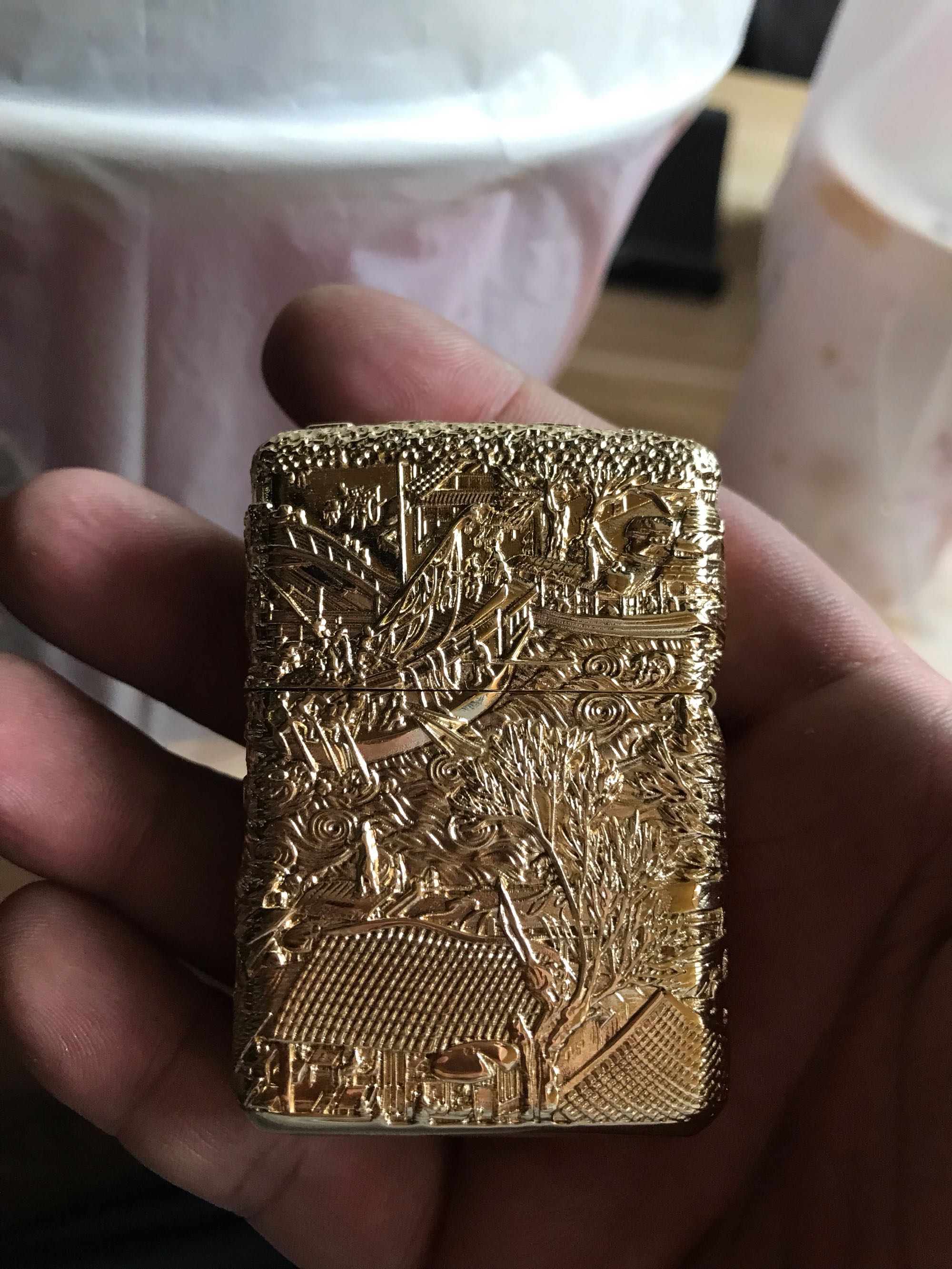 之前用的zippo丢了,今天准备再买一个,结果去了一眼就相中这个zorro清明上河图,然后才知道这个吧,管他真假,分量很足,有颜值就行了