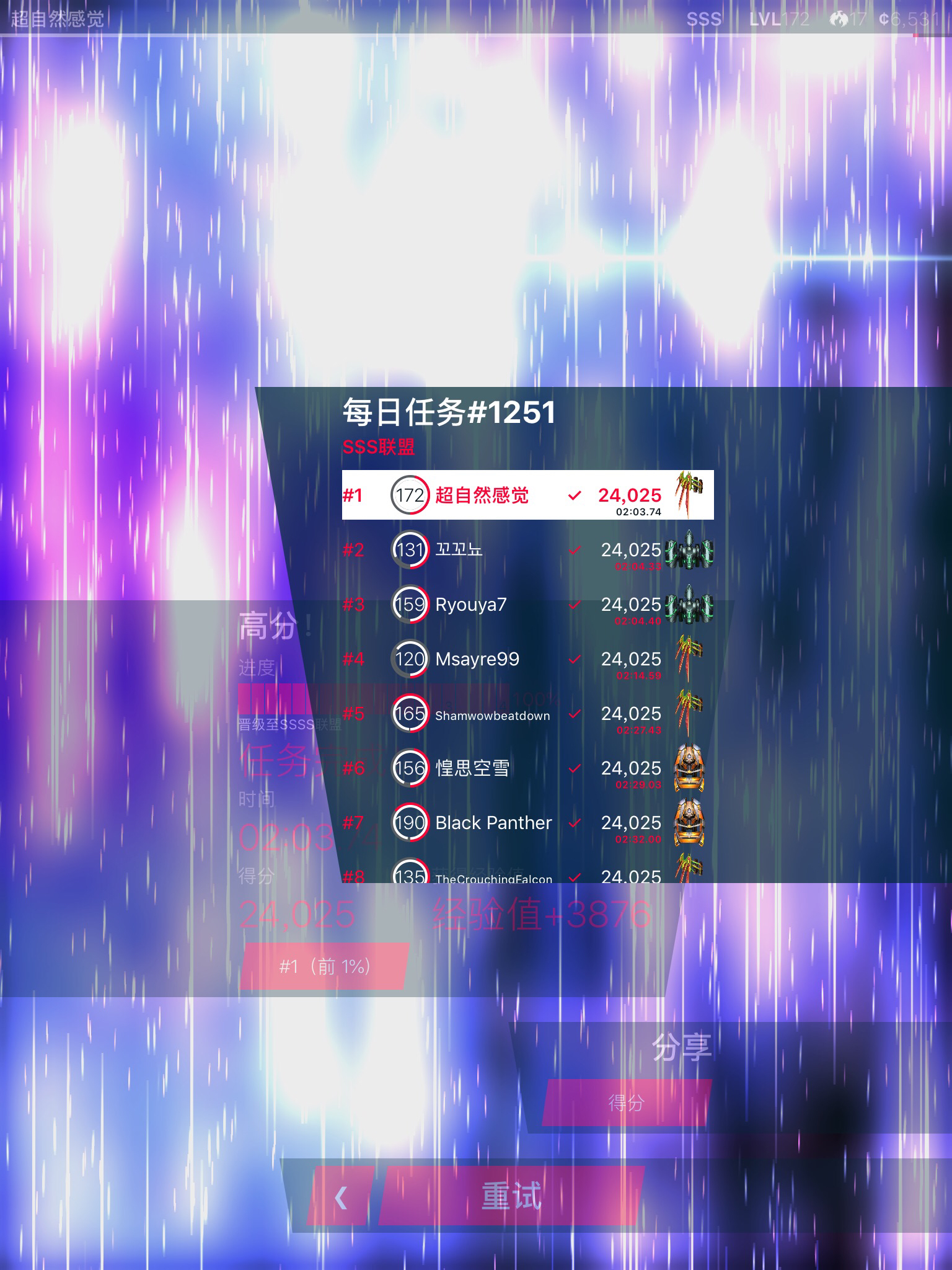 我是超自然感觉,前天懒得玩掉到SSS,然后就排第一了。